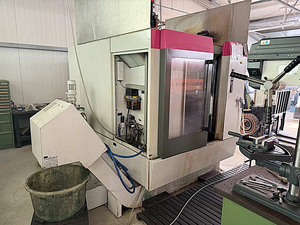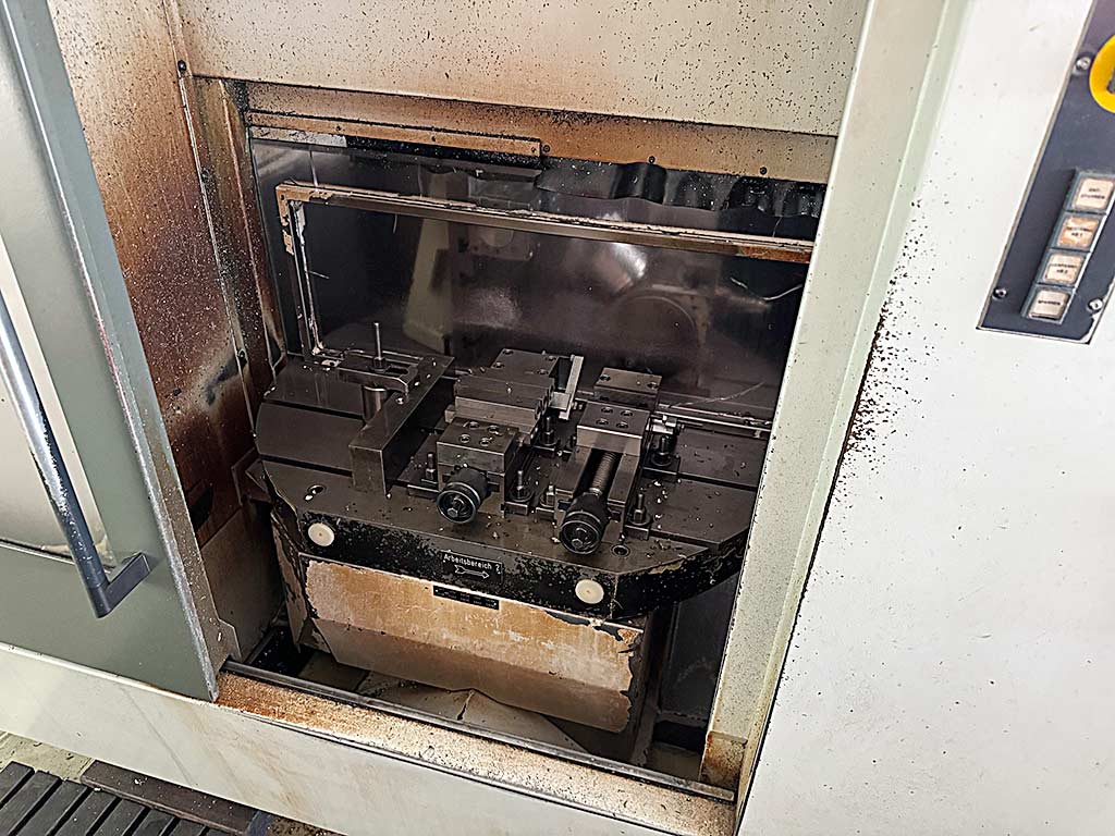 Beschreibung Verfahrweg X/Y/Z: 500mm/300mm/350mm, Tischdurchmesser: 950mm, max. Werkstückgewicht: 2x180kg, Drehzahl: 9000U/min, Werkzeugaufnahme: SK40, Werkzeugplätze: 36, Werkzeugdurchmesser: 100mm, Werkzeuglänge: 220mm, Vorschub: 10m/min, Eilgang: 40m/min. Maschinendimensionen X/Y/Z: ca. 4400mm/2700mm/2700mm, Gewicht: ca. 6000kg, Steuerung: Fanuc Series 18-M. Dokumentation vorhanden. Eine Besichtigung vor Ort ist möglich. |