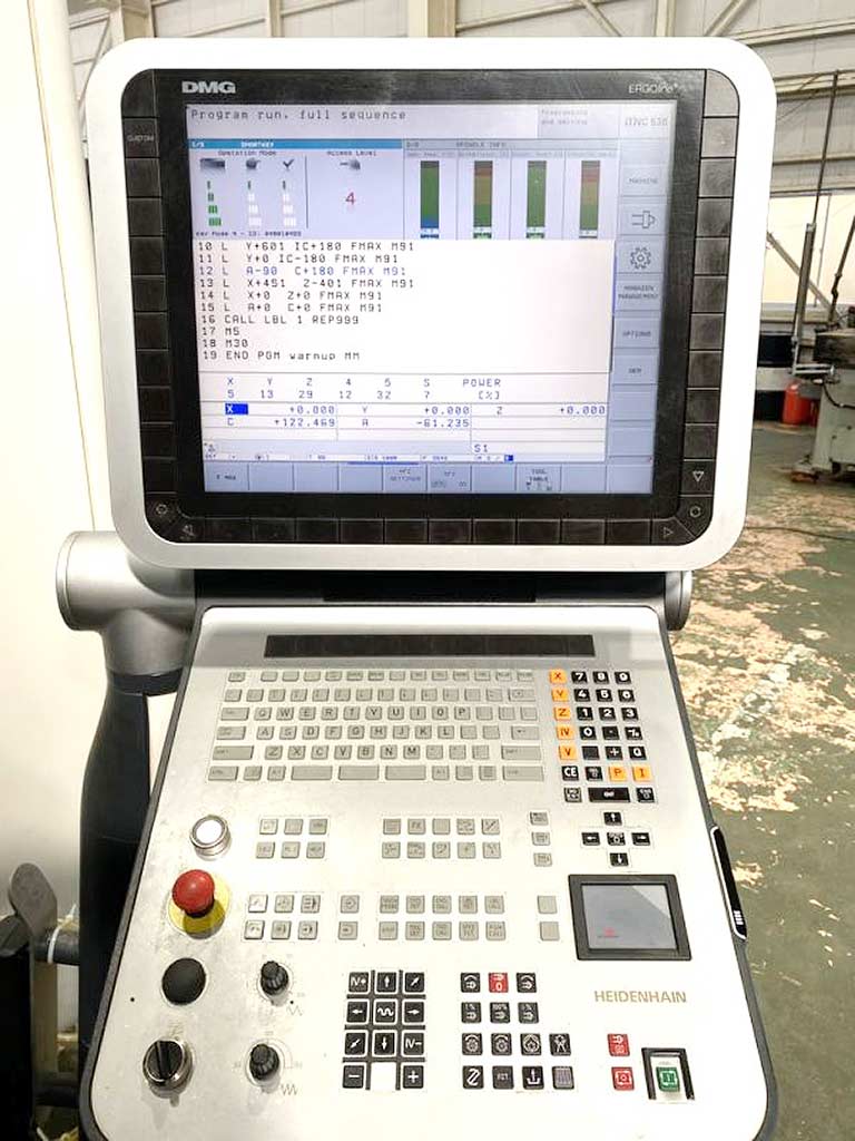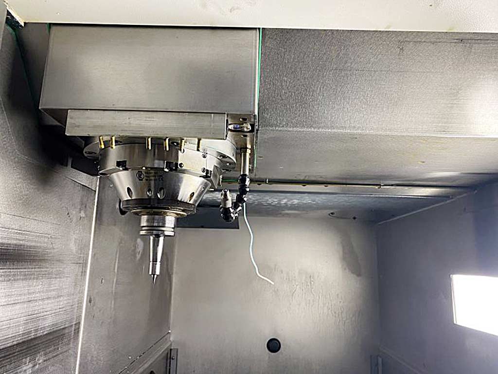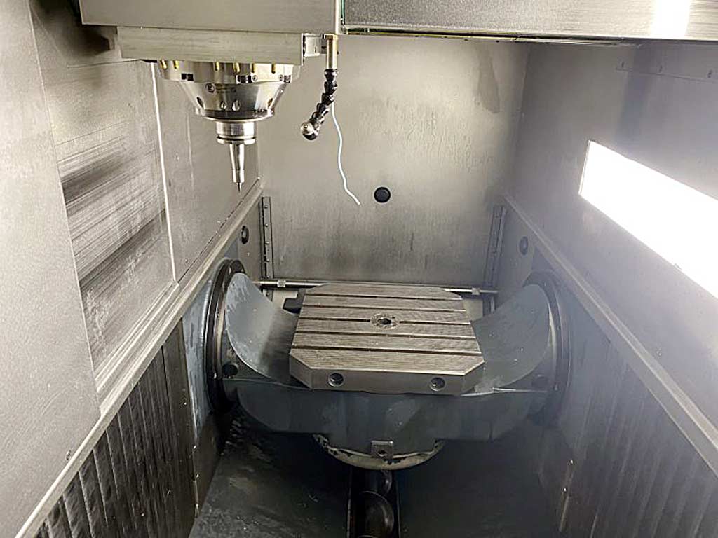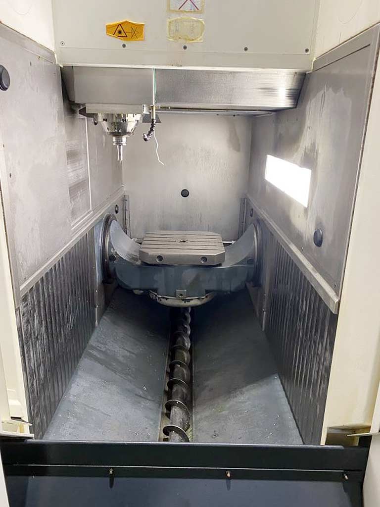 Beschreibung Verfahrweg X/Y/Z: 450mm/580mm/400mm, Schwenkbereich A/B: -110°/+10°, Drehbereich C: 360°, Tischdimensionen X/Y: 400mm/400mm, Werkzeugplätze: 30, Werkzeugaufnahme: HSK-E50, Drehzahl: 42000U/min, max. Werkstückgewicht: 200kg, Vorschub: 80m/min, max. Werkzeuglänge/-durchmesser: 250mm/80mm. Maschinendimensionen X/Y/Z: ca. 3250mm/2950mm/2900mm, Gewicht: ca. 9500kg, Steuerung: Heidenhain iTNC530. Dokumentation vorhanden. Eine Besichtigung vor Ort ist möglich. Die Maschine befindet sich in China. |