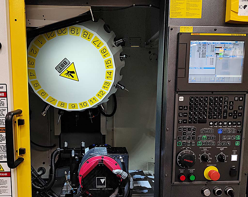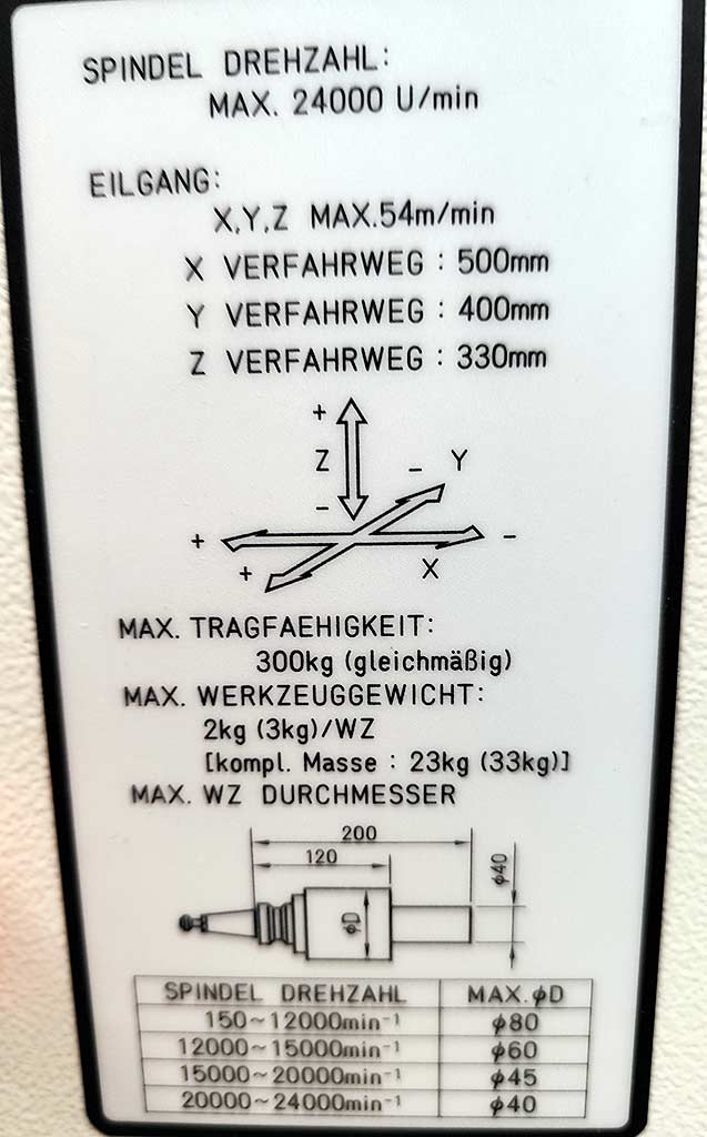 Beschreibung Ein komplett automatisiertes Bearbeitungszentrum Fanuc steht zur Verfügung. Verfahrweg X/Y/Z: 500mm/400mm/330mm, Eilgang: 54m/min, max. Tragfähigkeit: 300kg, Spindelaufnahme: MAS BT30, max. Drehzahl: 24000U/min, Robotertyp: Fanuc LR-Mate 200iD, max. Palettengewicht: 5kg. Maschinendimensionen X/Y/Z: ca. 4000mm/2800mm/2800mm, Gewicht: ca. 3500kg, Steuerung: Fanuc Series 31-iB5, Betriebsstunden: 29732h. Inklusive Knoll KF200/950, Knoll 300 K-1, Messtaster, Laser-Werkzeugvermessung Renishaw und Späneförderer. Dokumentation vorhanden. Eine Besichtigung vor Ort ist möglich. |