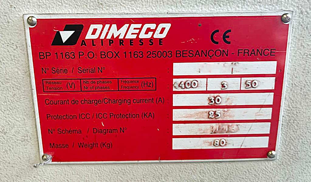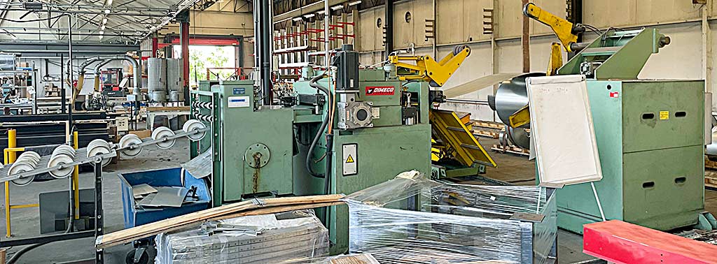 Beschreibung Eine Spulen-zu-Blech-Anlage Dimeco Alipress mit einem Decoiler, einem Richtapparat und einer Schere steht zur Verfügung. Blechbreitenbereich: 200mm-1300mm, Blechstärkenbereich: 1mm-7mm, Querschnittsbereich: 1400mm²-3250mm², max. Vorschubgeschwindigkeit: 30m/min, max. Hubzahl: 150/min, max. Materialvorschub: 1000mm/Hub, Richtapparat: Schechtl MSB100. Dokumentation vorhanden. Eine Besichtigung vor Ort ist möglich. |