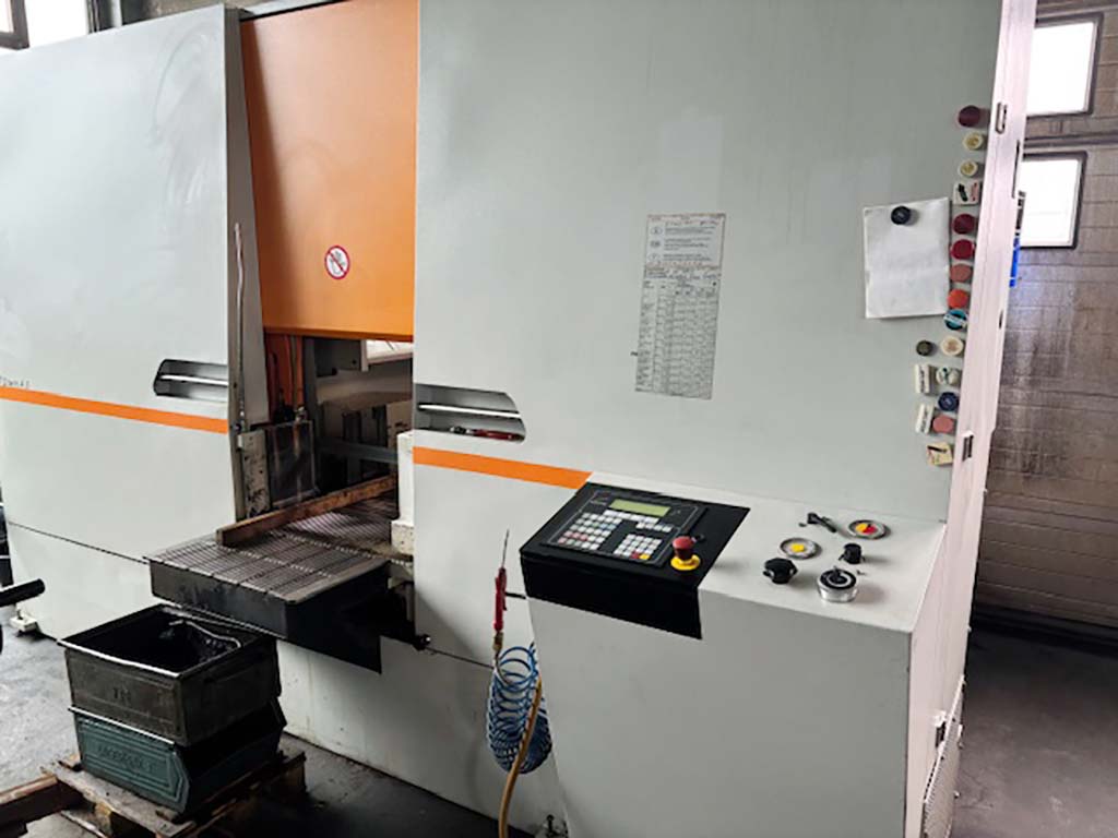 Beschreibung Schnittbereich rund: 560mm, Schnittbereich flach (BxH): 620x560mm, Materialvorschublänge, einfach: 900mm, Mehrfachvorschub: 9999mm, kürzeste Abschnittlänge: 6mm, kleinster zu sägender Durchmesser: 15mm, minimal Reststück im Einzelschnitt: 15mm, kürzeste Reststücklänge im Automatikbetrieb: 80mm, Sägemotorleistung, frequenzgeregelt: 5,5kW, Schnittgeschwindigkeit, stufenlos: 13-127m/min, Sägebandabmessung: 7400x54x1,6mm, Materialauflagehöhe: 700mm, Gesamtantriebswert in Grundausstattung: 12kW, Länge: 2370mm, Breite: 3610mm, Maße über alles mit Späneförderer (LxB): 2370x3610mm, Höhe Maschinentisch abgesenkt: 2230mm, Gewicht: ca. 5,2t, mit Späneförderer. Eine Besichtigung vor Ort ist möglich. |