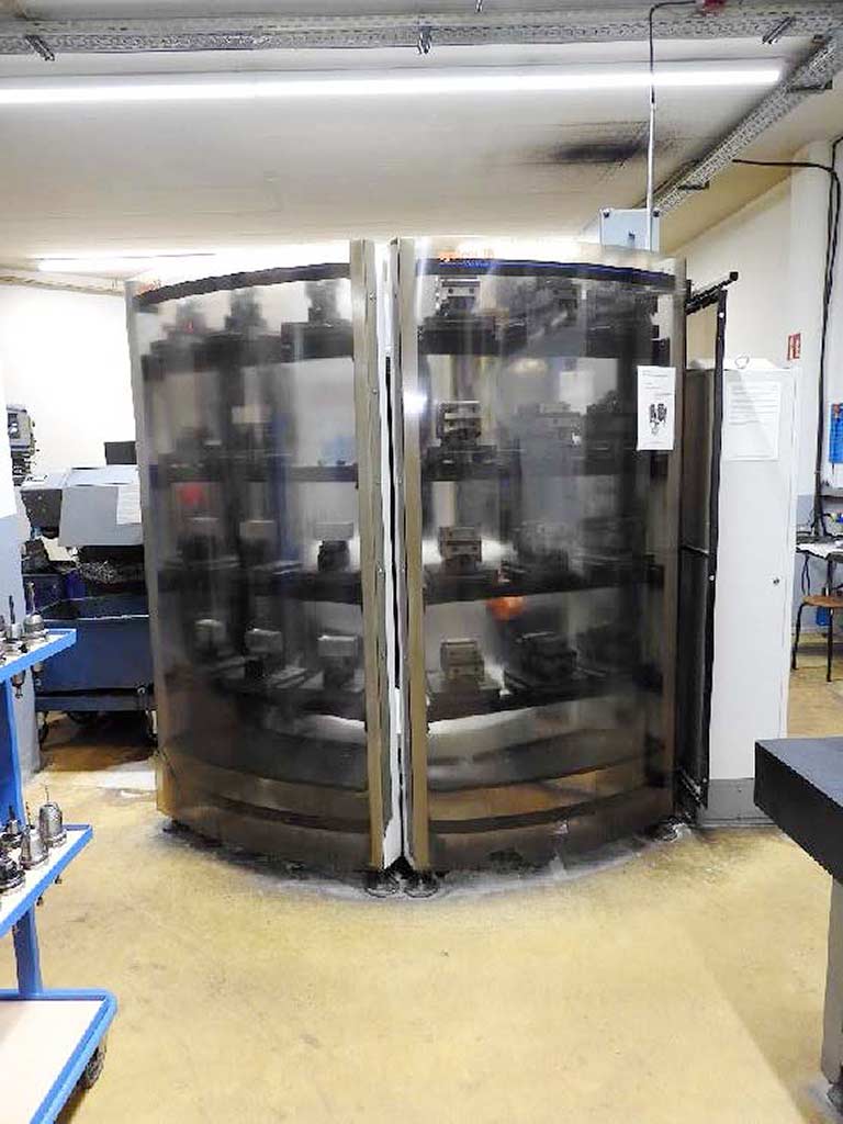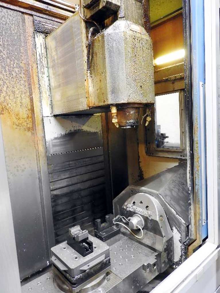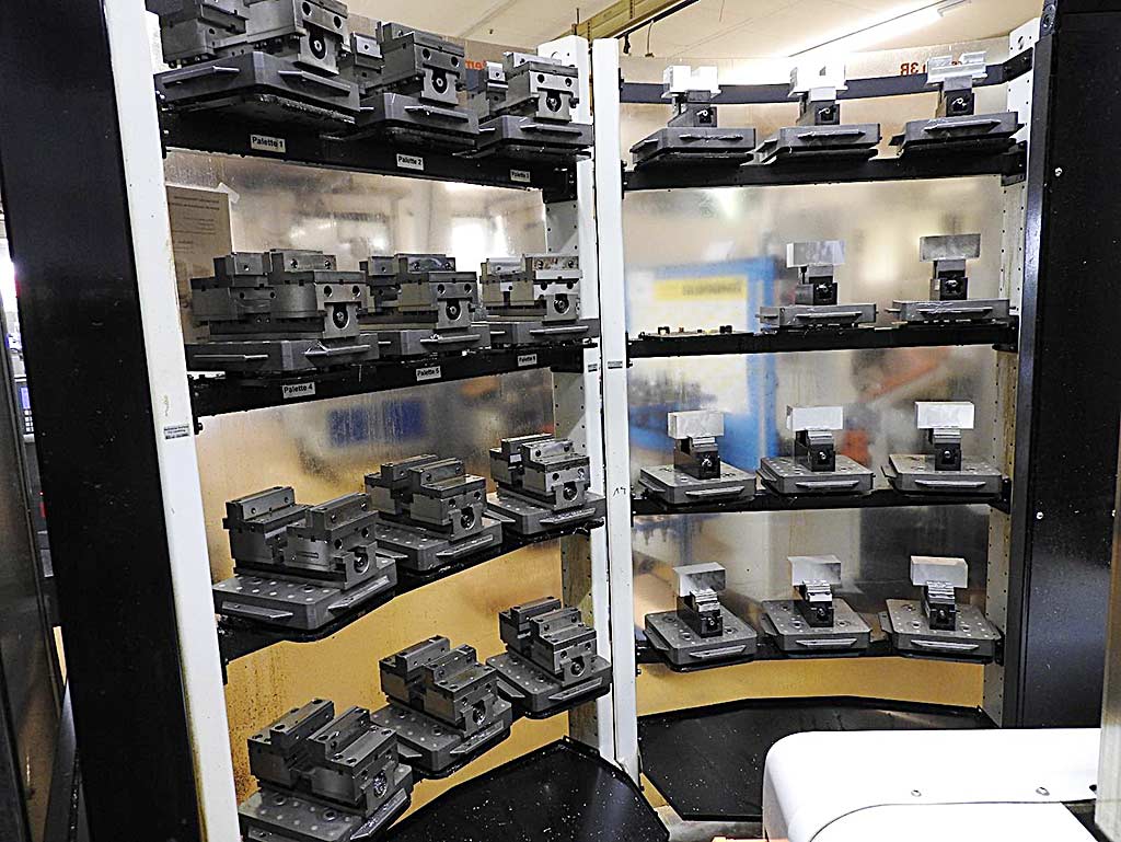 Beschreibung Verfahrweg X/Y/Z: 800mm/550mm/550mm, Werkzeugaufnahme: HSK63, Drehzahl: 12000U/min, Werkzeugplätze: 65, Steuerung: Siemens 840D, Spindelstunden: ca. 16000h. 3-Achs-Roboter System 3R Transformer WorkMaster, Baujahr: 2008, Transfergewicht: 150kg, Hub: 1500mm, Palettenplätze: 2x12. Inklusive Nullpunktspannsystem System 3R GPS 240, Späneförderer Knoll, Papierbandfilter Knoll, Lasermesssystem Blum LaserControl, 3D-Messtaster Renishaw und Ölnebelabsaugung. Dokumentation vorhanden. Eine Besichtigung vor Ort ist möglich. |