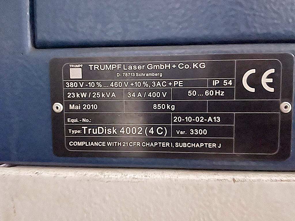 Beschreibung Laserleistung: 4000W (4kW), Wellenlänge: 1030nm, Strahlqualität (BPP): 8mm/mrad, Strahldurchmesser-Einstellung: 0,1µm, Maschinendimensionen X/Y/Z: ca. 1000mm/1600mm/1600mm, Gewicht: ca. 1000kg. Dokumentation vorhanden. Eine Besichtigung vor Ort ist möglich. |