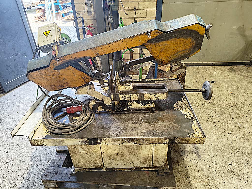 Beschreibung Sägebanddimensionen X/Y/Z: 2450mm/27mm/0,9mm, max. Schnittleistung bei 90°: 220mm/220mm, max. Schnittleistung bei 45°: 150mm/150mm, Schnittgeschwindigkeit: 120m/min, Maschinendimensionen X/Y/Z: ca. 1300mm/800mm/1500mm, Gewicht: ca. 250kg. Eine Besichtigung vor Ort ist möglich. |