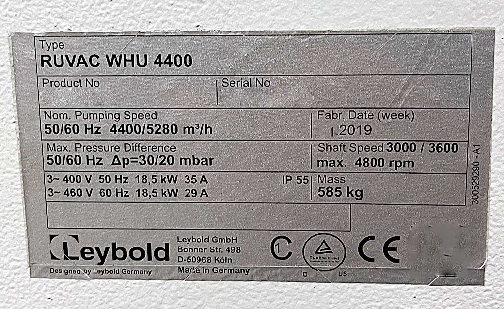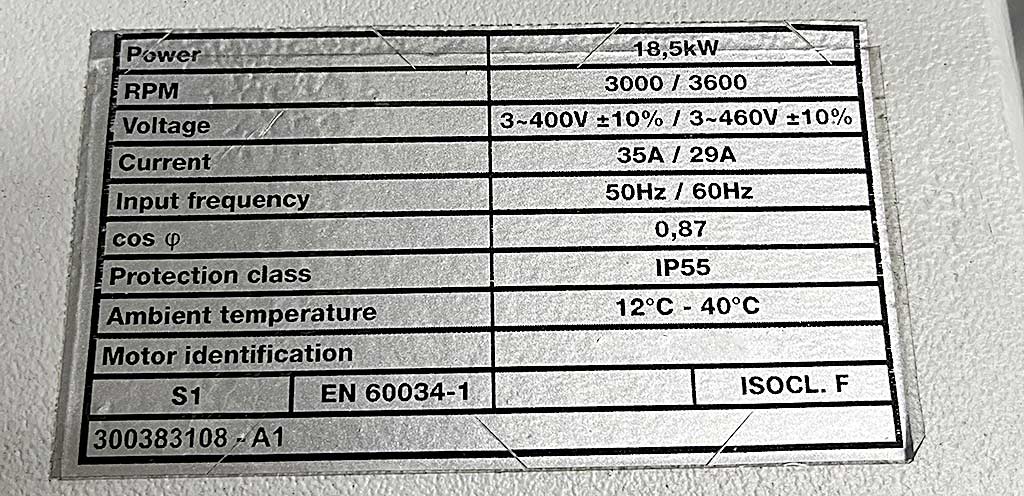 Beschreibung Leistung: 18,5kW, Leistungsfaktor: 0,87, Nenndrehzahl: 3000U/3600U/min, max. Drehzahl: 4800U/min, Nenndurchsatz: 4400m³/5280m³/h, max. Druckunterschied: 30mbar/20mbar, Betriebsart: S1, Gewicht: ca. 600kg. Eine Besichtigung vor Ort ist möglich. |