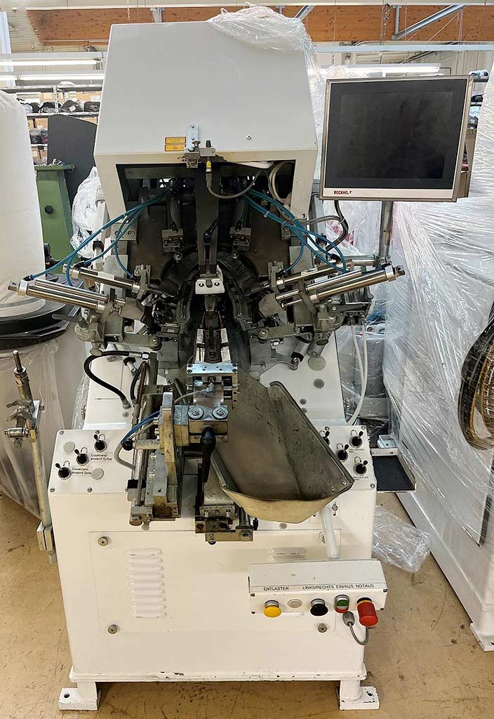 Beschreibung Eine Spitzenzwickmaschine Schoen + Sandt für die Schuhherstellungsindustrie, im Jahr 2018 durch die Fa. PPK überholt, steht zur Verfügung. Spitzenbandeinrichtung: 5-Punkt, Zwicksystem: 2-Maschinen, Maschinendimensionen X/Y/Z: ca. 1700mm/1050mm/2000mm, Gewicht: ca. 1350kg. Eine Besichtigung vor Ort ist möglich. |