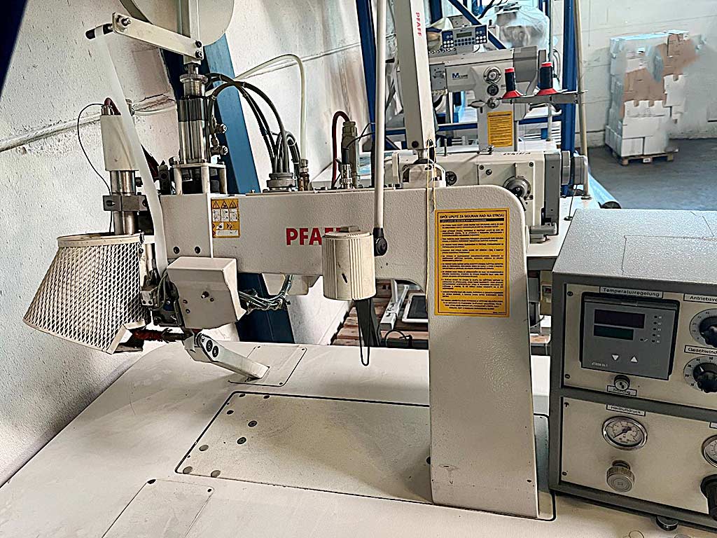 Beschreibung Diverse Näh- und Fügemaschinen zur Schaftendbearbeitung für die Schuhherstellungsindustrie stehen zur Verfügung. 1) Kunststoff- und Leder-Schweißmaschine Pfaff 8304-04247, Baujahr: 1999, max. Temperatur: 700°C, max. Schweißgeschwindigkeit: 20m/min, Maschinendimensionen X/Y/Z: ca. 1150mm/750mm/1400mm, Gewicht: ca. 130kg. 2) Fersenschluss-Bügelmaschine Elettrotecnica 443/V, Baujahr: 2013, max. Temperatur: 180°C, Heizdauer: 30s, Maschinendimensionen X/Y/Z: ca. 1000mm/600mm/1350mm, Gewicht: ca. 180kg. 3) Reparatur-Steppmaschine Global SR 9929, Baujahr: 2012, max. Nähgeschwindigkeit: 2000Stiche/min, max. Stichlänge: 8mm, Nähfußhub: 14mm. 4) Flachbügelpresse Global WJ-62, Baujahr: 2016, max. Temperatur: 200°C, Heizdauer: 60s, Arbeitsfläche X/Y: 380mm/380mm, Gewicht: ca. 60kg. 5) Kettelmaschine Pfaff 918-49, Nadel: 1, Fäden: 3, Stichlängenbereich: 1mm-4mm, Nähfußhub: 10mm, max. Nähgeschwindigkeit: 4000Stiche/min. 6) 2x Rundteller-Bügelmaschinen Sabal M 108-A, Baujahr: 2014, max. Temperatur: 180°C, Maschinendimensionen X/Y/Z: ca. 1000mm/800mm/1500mm, Gewicht: ca. 300kg. 7) Strobelmaschine Strobel KL141-23, Nähsystem: 1-Nadel-Kettenstich, Stichlängenbereich: 3,5mm-7mm, max. Nähgeschwindigkeit: 1800Stiche/min, Gewicht: ca. 50kg. Eine Besichtigung vor Ort ist möglich. |