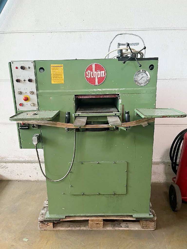 Beschreibung Diverse Maschinen für die Schuhherstellungsindustrie stehen zur Verfügung. 1) Kantenklopfmaschine Albeko 119, Maschinendimensionen X/Y/Z: ca. 700mm/500mm/1200mm, Gewicht: ca. 70kg. 2) Schärfmaschine Fortuna KS-P, Schleifscheibendurchmesser: 80mm, Drehzahl: 3000U/min, Maschinendimensionen X/Y/Z: ca. 800mm/600mm/1100mm, Gewicht: ca. 120kg. 3) 3x Schärfmaschinen Fortuna 3 SE-FZ, Baujahre: 1982/?/?, Schärfgeschwindigkeit: 20m/min, Maschinendimensionen X/Y/Z: ca. 850mm/600mm/1150mm, Gewicht: ca. 150kg. 4) Matrizierpresse Schön 22K, Baujahr: 1993, Presskraft: 20t, Pressfläche X/Y: 400mm/400mm, Hub: 80mm, Maschinendimensionen X/Y/Z: ca. 1200mm/900mm/1600mm, Gewicht: ca. 850kg. 5) Thermotransfer-Stempelmaschine Transmatic TMA 24, Baujahr: 2003, max. Temperatur: 200°C, Arbeitsfläche X/Y: 200mm/300mm, Maschinendimensionen X/Y/Z: ca. 800mm/700mm/1200mm, Gewicht: ca. 150kg. 6) Kantenklopfmaschine Colli BS 3, Baujahr: 2014, Maschinendimensionen X/Y/Z: ca. 600mm/450mm/1250mm, Gewicht: ca. 70kg. Eine Besichtigung vor Ort ist möglich. |