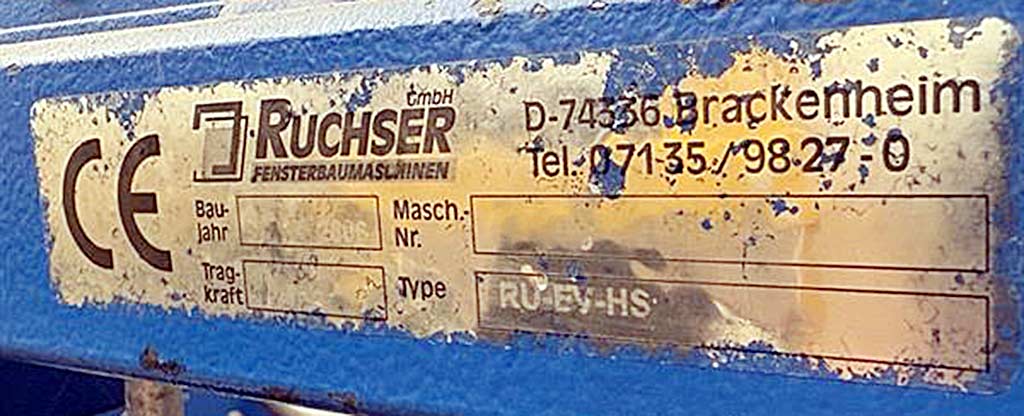 Beschreibung Drei kleinere Maschinen für Fenster- und Profilbearbeitungszwecke stehen zur Verfügung. 1) Profilklebemaschine Ruchser RU-FE, Baujahr: 2003, Filmbreitenbereich: 30mm-250mm, Folien-Innen-/Außendurchmesser: 75mm/270mm, Profilstärkenbereich: 30mm-100mm. 2) Gummieinlegemaschine Ruchser RU-EV-HS, Baujahr: 2006, Profilbreitenbereich: 20mm-100mm. 3) 2-Kopf-Profilfräsmaschine Elumatec KF 78/60, Baujahr: 1993, Vertikalfräsen X/Y/Z: 290mm/100mm/120mm, Horizontalfräsen X/Y/Z: 270mm/70mm/120mm, Drehzahl: 6000U/12000U/min. Eine Besichtigung vor Ort ist möglich. |