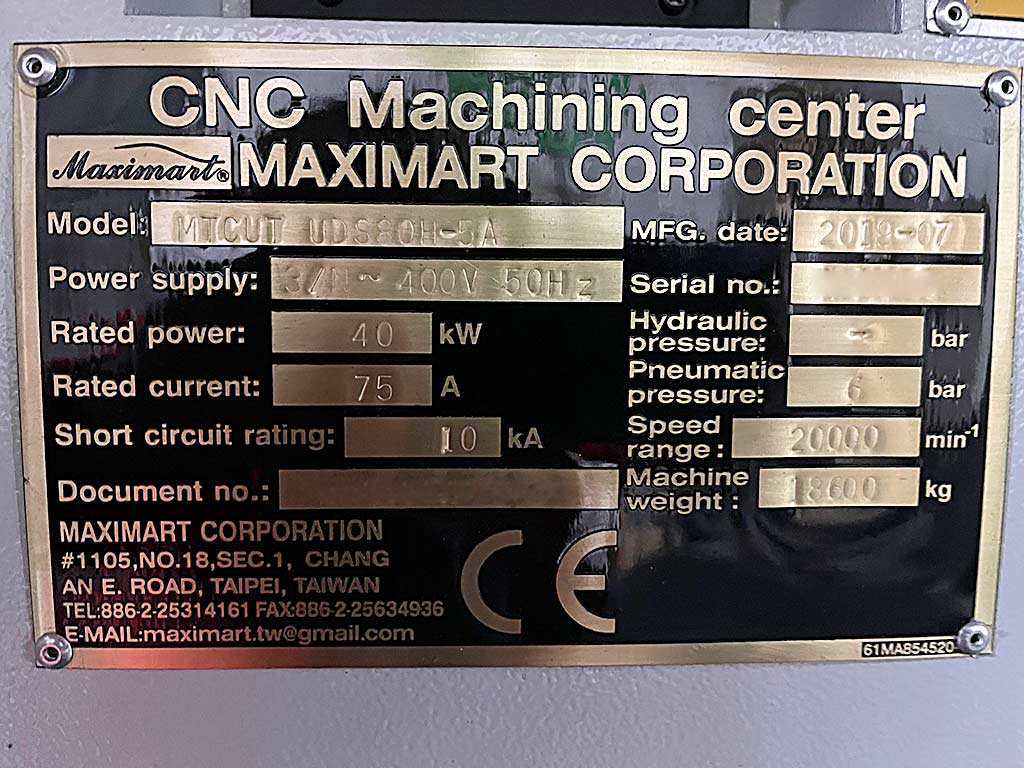 Beschreibung Eine CNC-5-Achs-Hochgeschwindigkeitsfräsmaschine Maxiport Corporation steht zur Verfügung. Verfahrweg X/Y/Z: 800mm/1010mm/650mm, Drehzahl: 20000U/min, Drehmoment: 120Nm, Antriebsleistung: 35kW, Werkzeugaufnahme: HSK-63, Werkzeugplätze: 96, Werkzeugwechsler: Doppelgreifer, Rundtischdurchmesser: 800mm, Gewicht: ca. 19000kg, Steuerung: Heidenhain TNC 640, Betriebsstunden: 6905h, Laufstunden: 2215h. Inklusive Heidenhain TS460, Späneförderer, Werkzeugvermessung Blum, 50bar IKZ mit KSS-Anlage, Heidenhain KinematicsOpt mit Kalibrierkugel KKH250, Absauganlage Filtermist FX4002 und Werkzeugpaket. Die Maschine weist einen Schaden auf, der vor dem Verkauf behoben wird. Dokumentation vorhanden. Eine Besichtigung vor Ort ist möglich. |