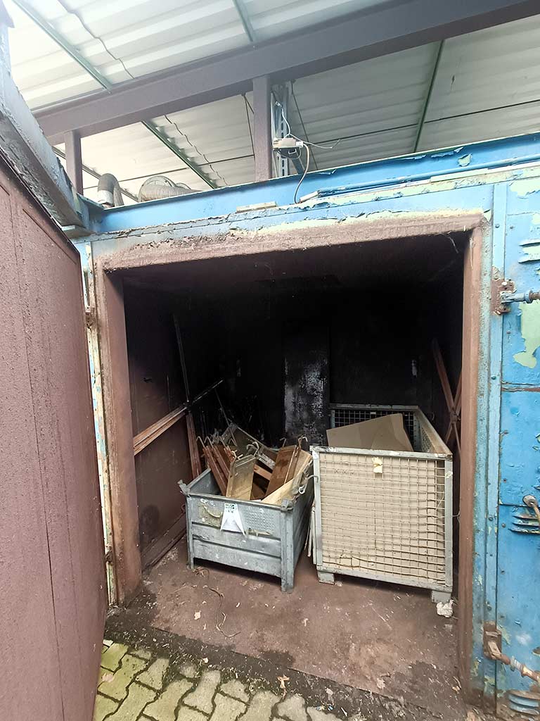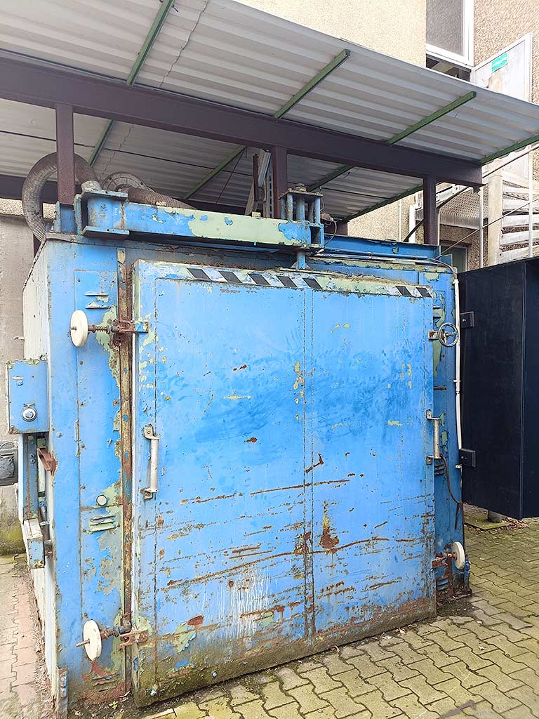| Beschreibung Ein Bodenkammerofen unbekannten Fabrikats steht zur Verfügung. Innenvolumen: ca. 4m³, Temperaturbereich: 50°C-400°C, Innendimensionen X/Y/Z: ca. 1800mm/1500mm/1800mm, Maschinendimensionen X/Y/Z: ca. 2500mm/2500mm/2500mm. Eine Besichtigung vor Ort ist möglich. |