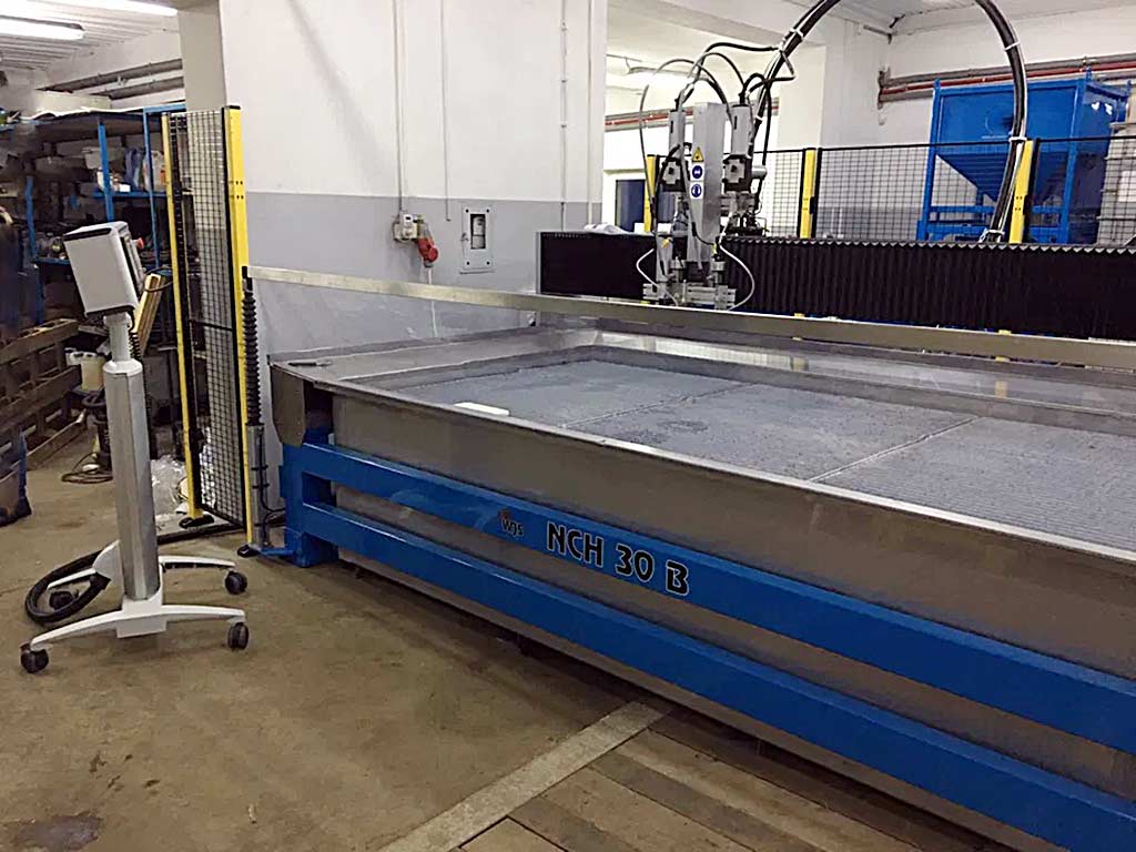 | Beschreibung Schneidköpfe: 2, Schneidkopftyp: AWJ 2D, Sandzuführung: System SM4000, Pumpentyp: KMT Streamline SL-VI Standard, max. Pumpendruck: 3800bar. Tischdimensionen X/Y: 3200mm/1710mm, Schneiddimensionen X/Y: 3010mm/1510mm, Verfahrweg X/Y/Z: 3010mm/1510mm/250mm, Verfahrgeschwindigkeit: 12m/min, Schneidkopf-Abstandsbereich: 90mm-450mm, Positioniergenauigkeit: +/-0,075mm, Wiederholgenauigkeit: +/-0,035mm, Steuerung: Fanuc 0i-MF, Betriebsstunden: 4866h. Inklusive Ölkühler, Wasseraufbereitung und Sicherheitszone. Dokumentation vorhanden. Eine Besichtigung vor Ort ist möglich. |