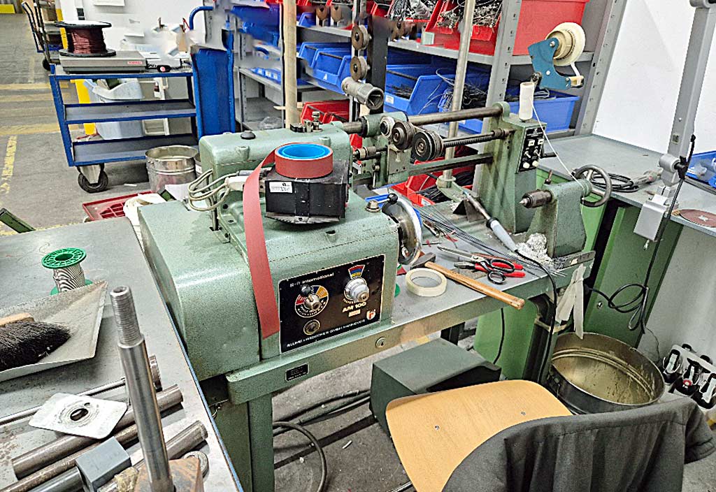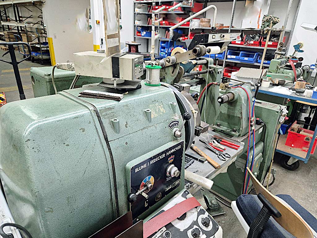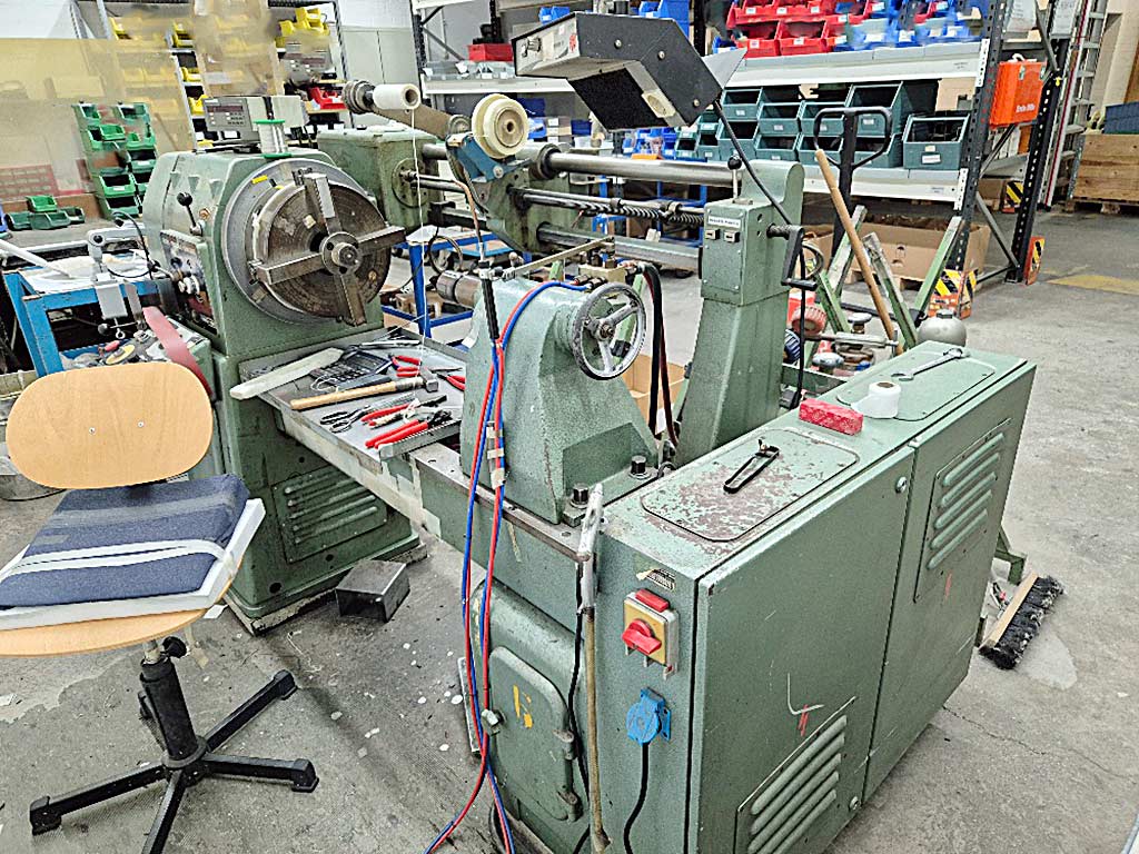 | Beschreibung Zwei Tischwickelmaschinen Blume & Redecker stehen zur Verfügung. 1) AM 100, Baujahr: 1980, max. Drahtdurchmesser: 3,75mm, Verlegelänge: 600mm, max. Spulendurchmesser: 340mm. 2) AM 150, Drahtdurchmesserbereich: 0,16mm-13,2mm, Spindelabstand: 80mm, Spitzenhöhe: 300mm, Wendekreis: 600mm, max. Drehzahl: 1000U/min, Drehdurchmesser: 500mm. Maschinendimensionen: ca. 850mm/1900mm/1350mm. Eine Besichtigung vor Ort ist möglich. |