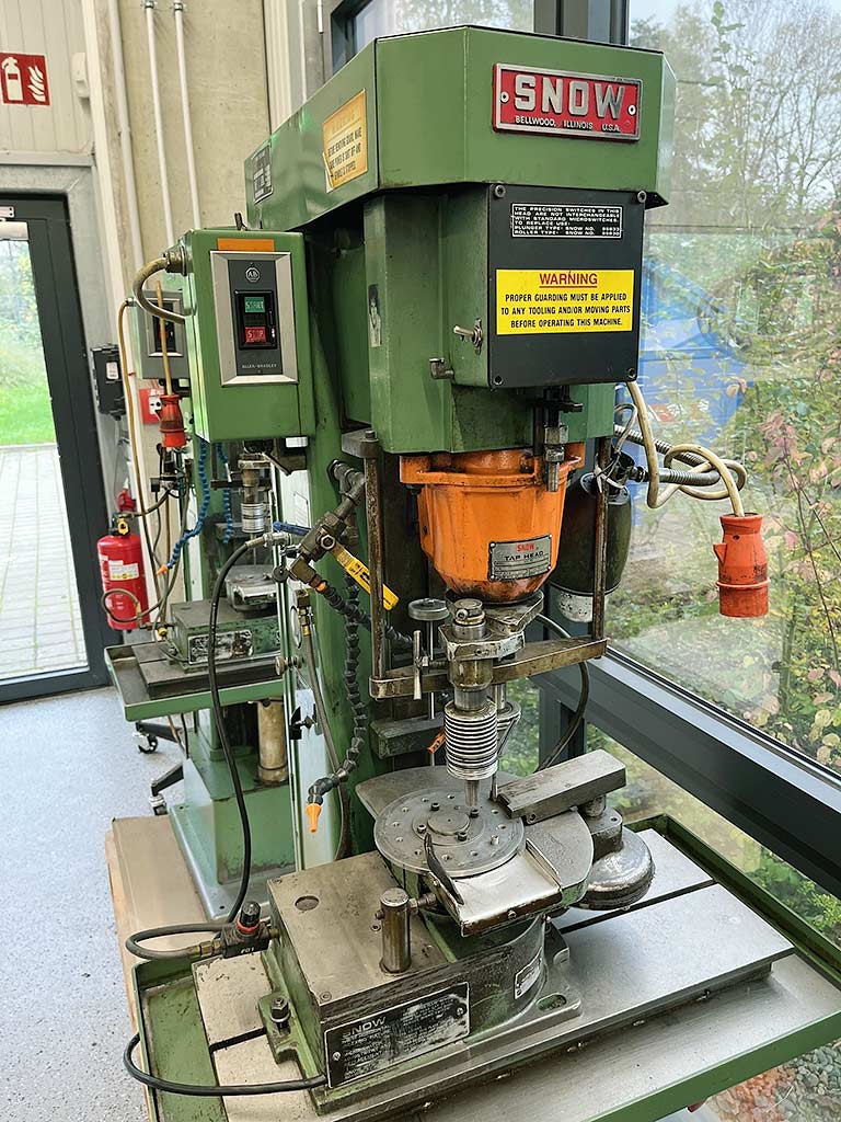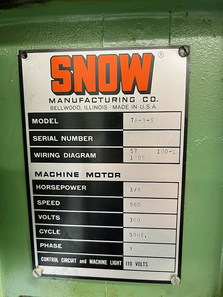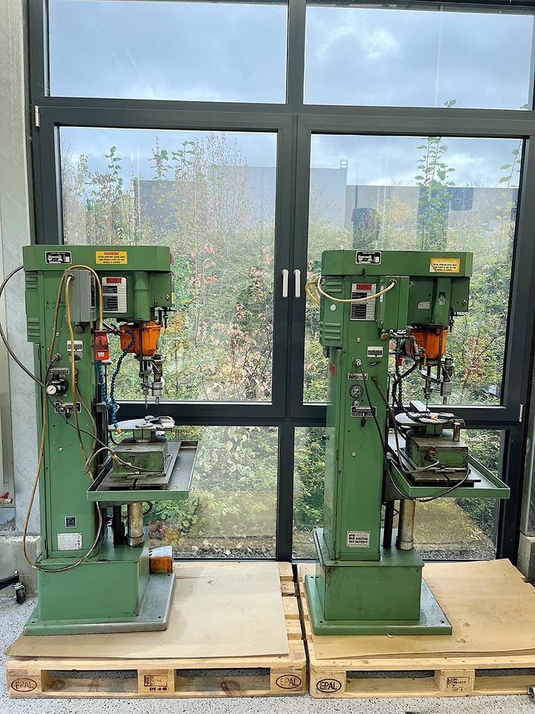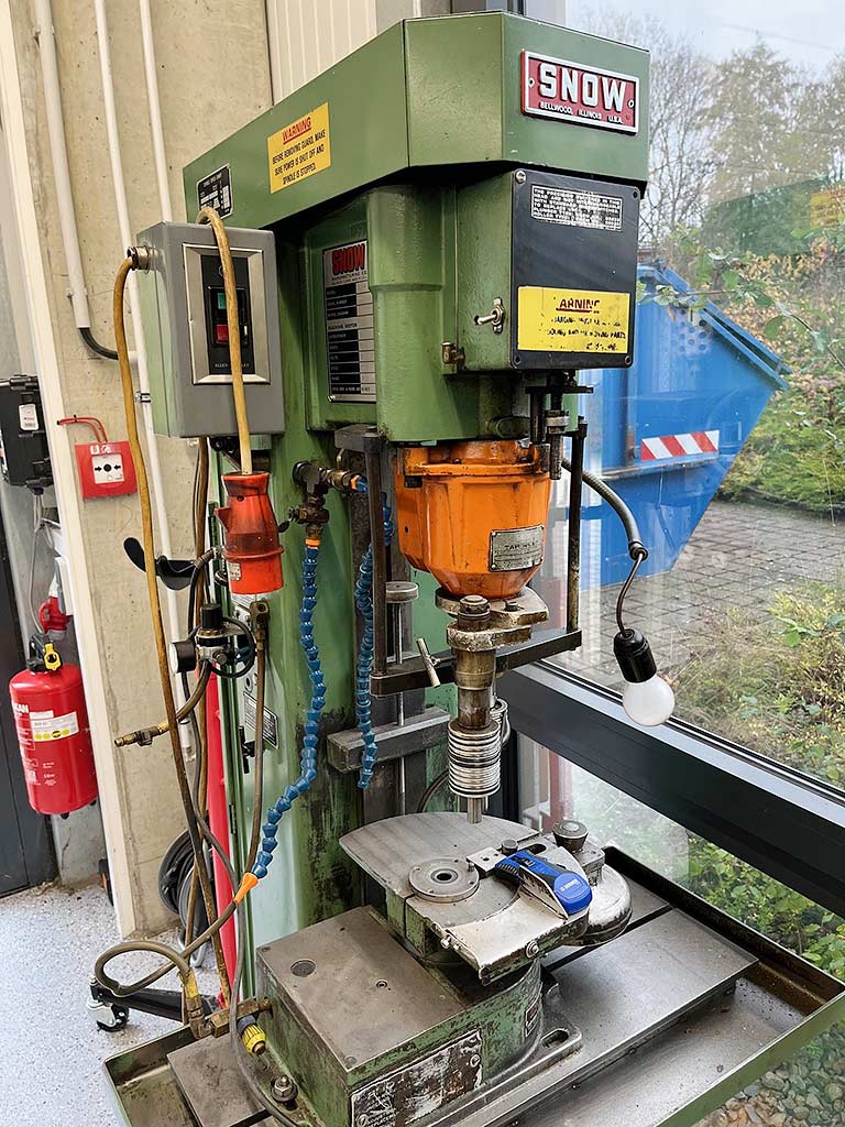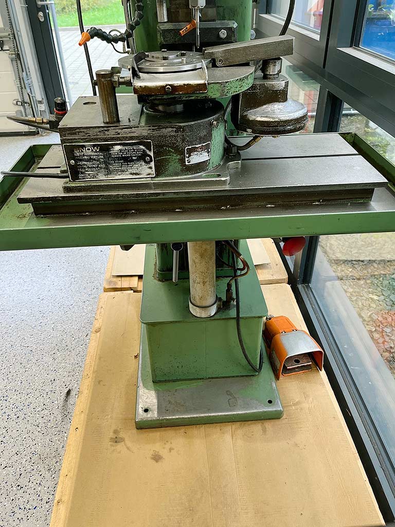 | Beschreibung Zwei bauähnliche Ständerbohrmaschinen Snow stehen zur Verfügung. 1) Snow TA-3, Drehzahl: 700U/min, Tischdimensionen X/Y: 460mm/270mm, Tisch-Vertikalverstellung: 255mm, Spindelaufnahme: MK1. 2) Snow TA-3-S, Drehzahl: 1000U/min, Tischdimensionen X/Y: 460mm/270mm, Spindelaufnahme: MK1. Eine Besichtigung vor Ort ist möglich. |