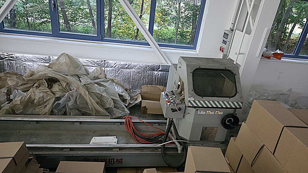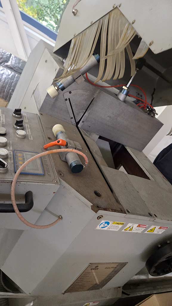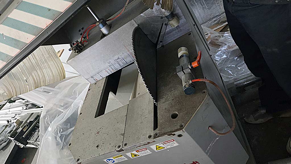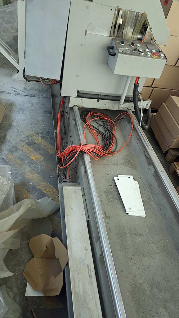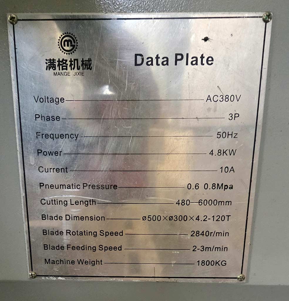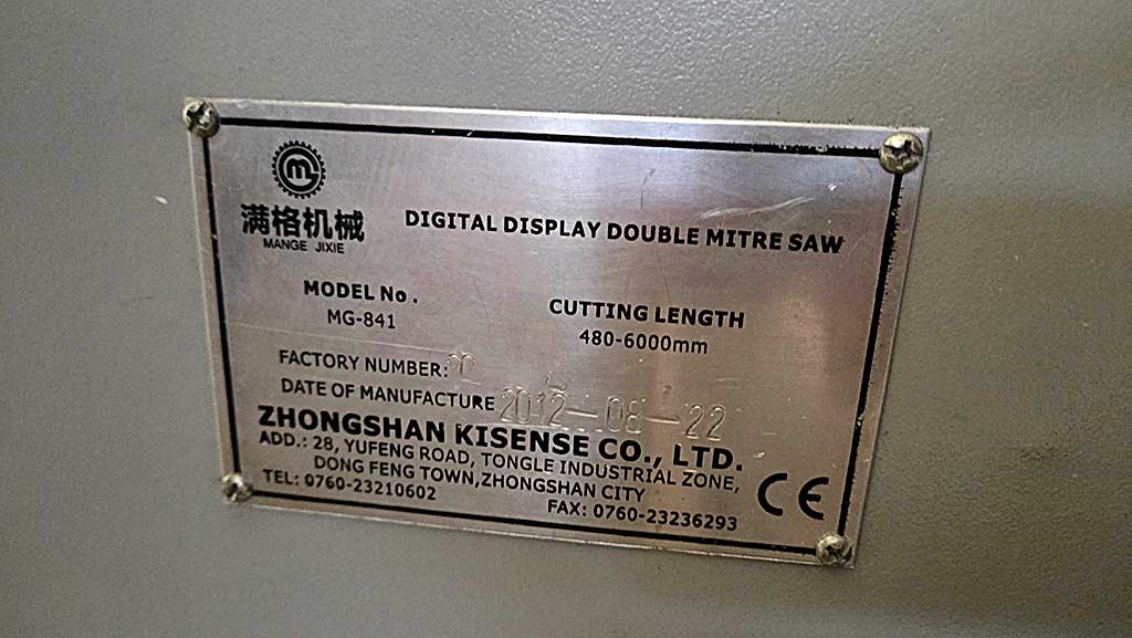 | Beschreibung Eine Doppelgehrungssäge des chinesischen Herstellers Mange Jixie mit Digitalanzeige steht zur Verfügung. Leistung: 4,8kW, Druck: 0,8MPa, Schneidelängenbereich: 480mm-6000mm, Sägeblattaußendurchmesser: 500mm, Sägeblattinnendurchmesser: 300mm, Sägeblattstärke: 4,2mm, Zähneanzahl: 120, Vorschub: 2-3m/min, Sägeblattdrehzahl: 2840U/min, Gewicht: ca. 1800kg. Eine Besichtigung vor Ort ist möglich. |