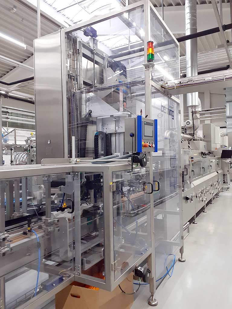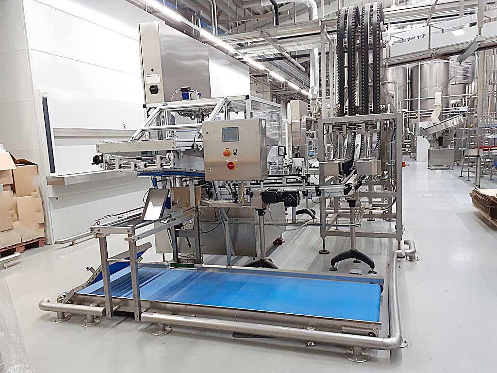 | Beschreibung Eine komplette Sleeve-Verpackungsanlage Berning für das automatisierte Etikettieren und Verpacken von Flaschen oder Bechern in Schrumpfsleeves steht zur Verfügung. 1) Sleevemaschine Berning Maschinenbau, Baujahr: 2018, Taktleistung: 100Takte/min, max. Produktdurchlaufhöhe: 320mm, Produktbreitenbereich: 10mm-190mm, Betriebsstunden: ca. 3562h. 2) Flaschenaufsteller Franz Tölke, Baujahr: 2018, Durchsatzleistung: 240Stück/min. Inklusive Ausrichter und Bechereinsetzer. 3) Zähleinheit Ropack mit automatischem Kartonwechsler. Dokumentation vorhanden. Eine Besichtigung vor Ort ist möglich |