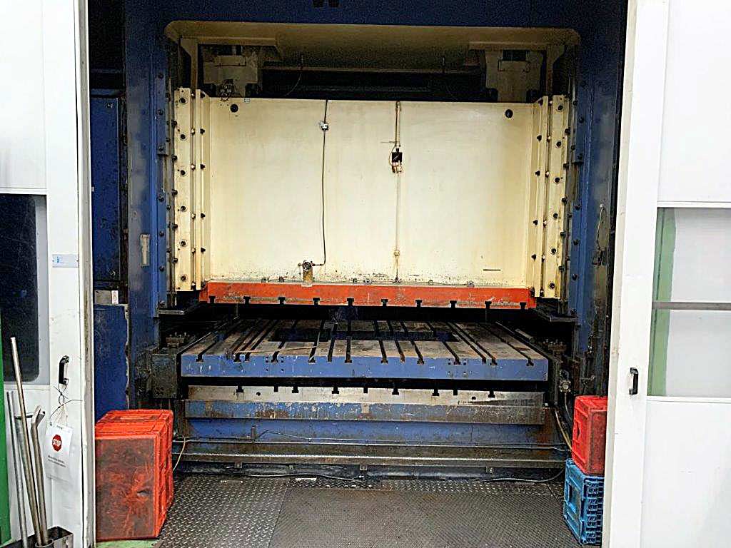 | Beschreibung Presskraft: 3150kN, Tischdimensionen X/Y: 2500mm/1600mm, Stößelhub (fest): 280mm, Hubzahl: 20-80Hübe/min, Gewicht: ca. 68000kg. Inklusive Transfer- und Bandanlage Dreher. Die Steuerung ist defekt. Dokumentation vorhanden. Eine Besichtigung vor Ort ist möglich. |