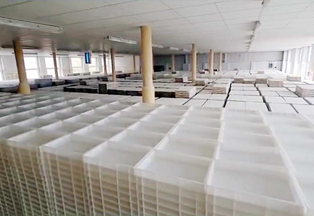 | Beschreibung Eine komplette Mogulanlage für die Herstellung von zuckerbasierten Bärchen, Eiern und sonstigen Süßwaren steht zur Verfügung. Zurzeit werden kleine Zuckerostereier mit der Anlage produziert, jedoch können die Formate geändert werden, da die Anlage hauptsächlich mechanisch ist und über einen Schaltschrank gesteuert wird. Der Gießtrichter arbeitet kontinuierlich. Produktionsleistung: ca. 100kg/h, Holzstärketrägeranzahl: ca. 10000-11000. Inklusive Holzstärkekästen. Eine Besichtigung vor Ort ist möglich. |