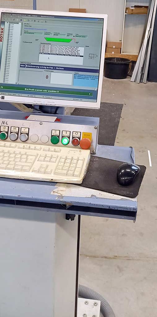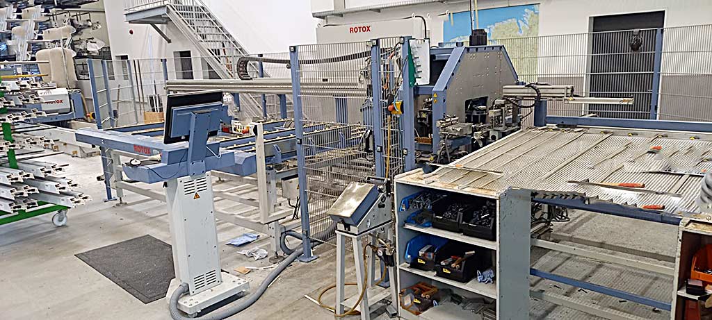 | Beschreibung Ein Stabbearbeitungsautomat Rotox für die Profilbearbeitung im Fensterbau steht zur Verfügung. Profilbreitenbereich: 60mm-120mm, Profilhöhenbereich: 55mm-120mm, min. Stablänge: 300mm, max. Stablänge: 4650mm, Achsen: 3, Durchsatzleistung: ca. 60-140 Fenster/Schicht. Maschinendimensionen X/Y/Z: ca. 10500mm/3500mm/2100mm, Gewicht: ca. 4300kg. Dokumentation vorhanden. Eine Besichtigung vor Ort ist möglich. Voraussichtlich ab Ende 2026 verfügbar. |