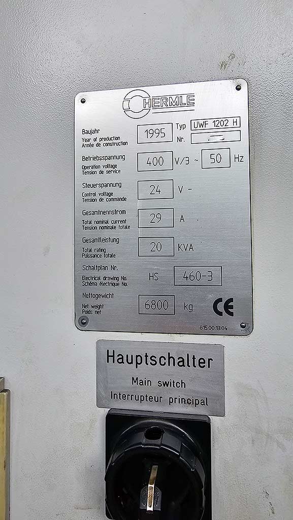 | Beschreibung Verfahrweg X/Y/Z: 850mm/630mm/500mm, Tischdimensionen X/Y: 1200mm/550mm, max. Tischbelastung: 700kg, Werkzeugaufnahme: SK40, Werkzeugplätze: 34, Drehzahl: 5000U/min, Spindelkopfschwenkung: +/-90°, Vorschub: 10m/min, Eilgang: 10m/min. Maschinendimensionen X/Y/Z: ca. 4000mm/2800mm/2400mm, Gewicht: ca. 6800kg. Dokumentation vorhanden. Eine Besichtigung vor Ort ist möglich. |