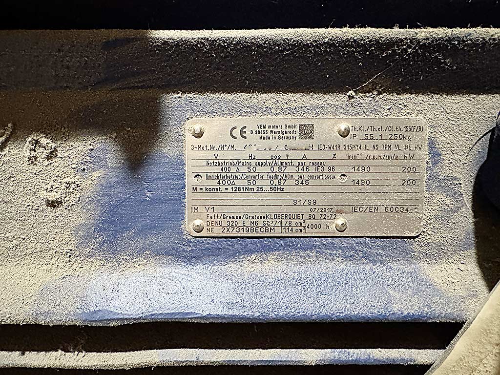 | Beschreibung Ein Flanschgetriebemotor Siemens und zwei baugleiche Drehstrommotoren VEM stehen zur Verfügung. 1) Flanschgetriebemotor Siemens, Baujahr: 2014, Wellendurchmesser: 80mm, Leistung: 160kW, Drehzahl: 1485U/min, Übersetzungsverhältnis: 33. 2) 2x Drehstrommotoren VEM, Baujahr: 2017, Leistung: 200kW, Drehzahl: 1490U/min, Betriebsart: Dauerbetrieb, Leistungsfaktor: 0,87, Gewicht: ca. 250kg. Eine Besichtigung vor Ort ist möglich. Einzelverkauf möglich. |