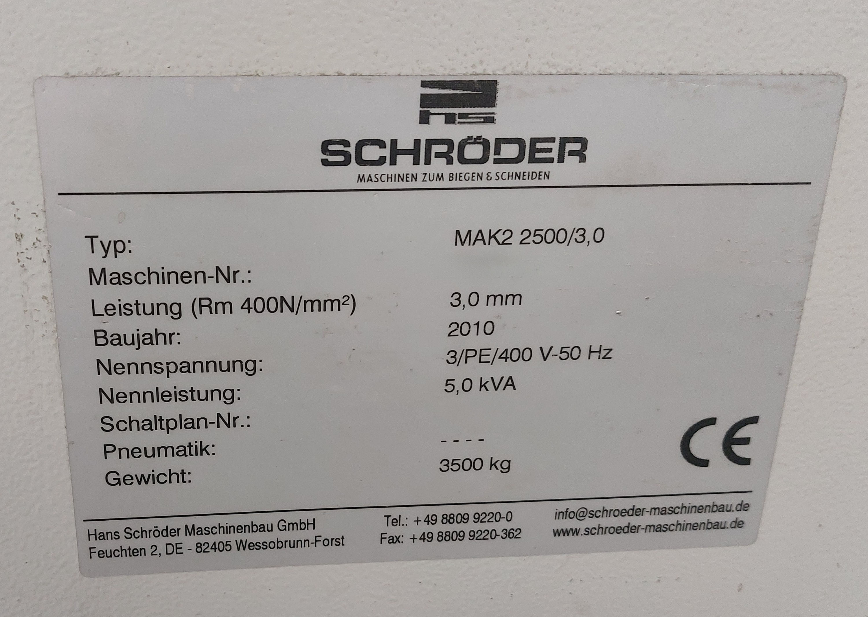 | Beschreibung Zum Verkauf steht eine Abkantbank. Arbeitslänge: 2500mm, max. Blechstärke (bei 400N/mm²): 3,0mm, Gewicht: 3500kg. Eine Besichtigung ist nach Absprache möglich |