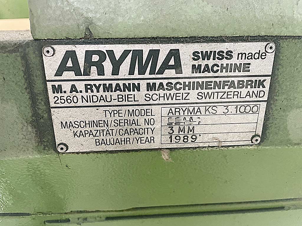 | Beschreibung Eine Hochleistungs-Kreisschere Aryma für die Serienfertigung von Ronden und Ringen aus Blech steht zur Verfügung. Materialstärke: 3mm, max. Scheibendurchmesser: 150mm, max. Quadratblech-Scheibendurchmesser: 1000mm, max. Achteck-Scheibendurchmesser: 1250mm, Schneidgeschwindigkeit: 70m/min, Schneidrollendurchmesser: 70mm. Maschinendimensionen X/Y/Z: ca. 2000mm/1000mm/1750mm, Gewicht: ca. 1500kg. Eine Besichtigung vor Ort ist möglich. |