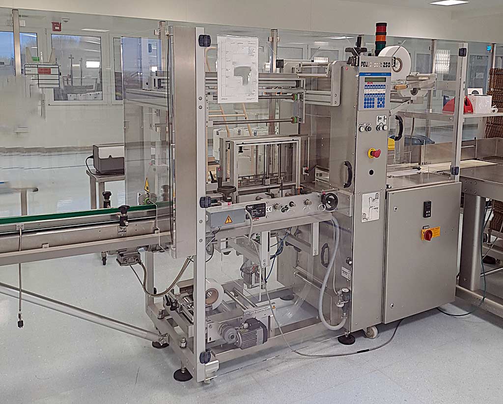 | Beschreibung Eine vollautomatische Straffbanderoliermaschine Pester Pac für Faltschachteln steht zur Verfügung. Gebindeleistung: 40/min, min. Kartondimensionen X/Y/Z: 30mm/15mm/60mm, max. Kartondimensionen X/Y/Z: 150mm/90mm/180mm, min. Gebindedimensionen X/Y/Z: 60mm/30mm/60mm, max. Gebindedimensionen X/Y/Z: 360mm/180mm/250mm. Folienbreitenbereich: 50mm-250mm, Folienstärkenbereich: 25m-80µm, max. Folienrollendurchmesser: 300mm, max. Einschubdimensionen X/Y/Z: 180mm/400mm/200mm, max. Siegelbreite: 250mm. Maschinendimensionen X/Y/Z: ca. 2100mm/1100mm/2100mm, Gewicht: ca. 1000kg. Dokumentation vorhanden. Eine Besichtigung vor Ort ist möglich. |