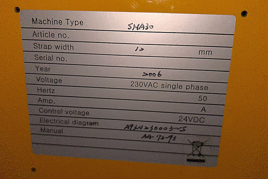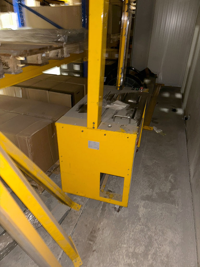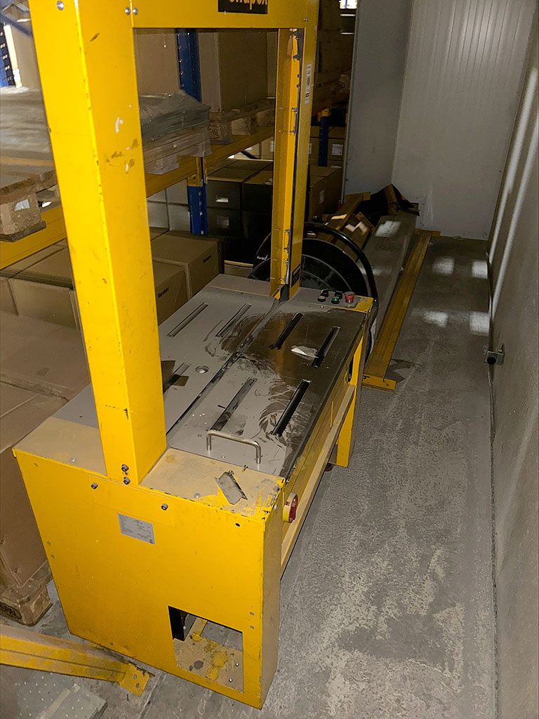 | Beschreibung Angeboten wird eine vollautomatische Umreifungsmaschine für PP-Band, Bj. 2006. Die Maschine weist Defekte auf. Elektronische Bandspannungsregelung 50-450N, Polypropylen (PP)-Umreifungsband Bandbreite: 12mm, Kerndurchmesser X/Y 200mm/280mm, Wärmeschweißverschluss, Zyklusleistung 30 Umreifungen/min, Paketabmessung X/Y: min 100mm/30mm, Maschinenmaße X/Y: 1450mm/600mm, Arbeitshöhe: 800mm, Gewicht: ca. 220kg. Besichtigung nach Absprache möglich. |