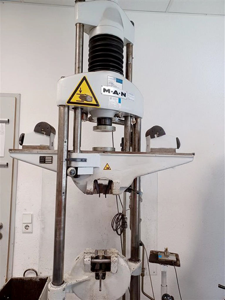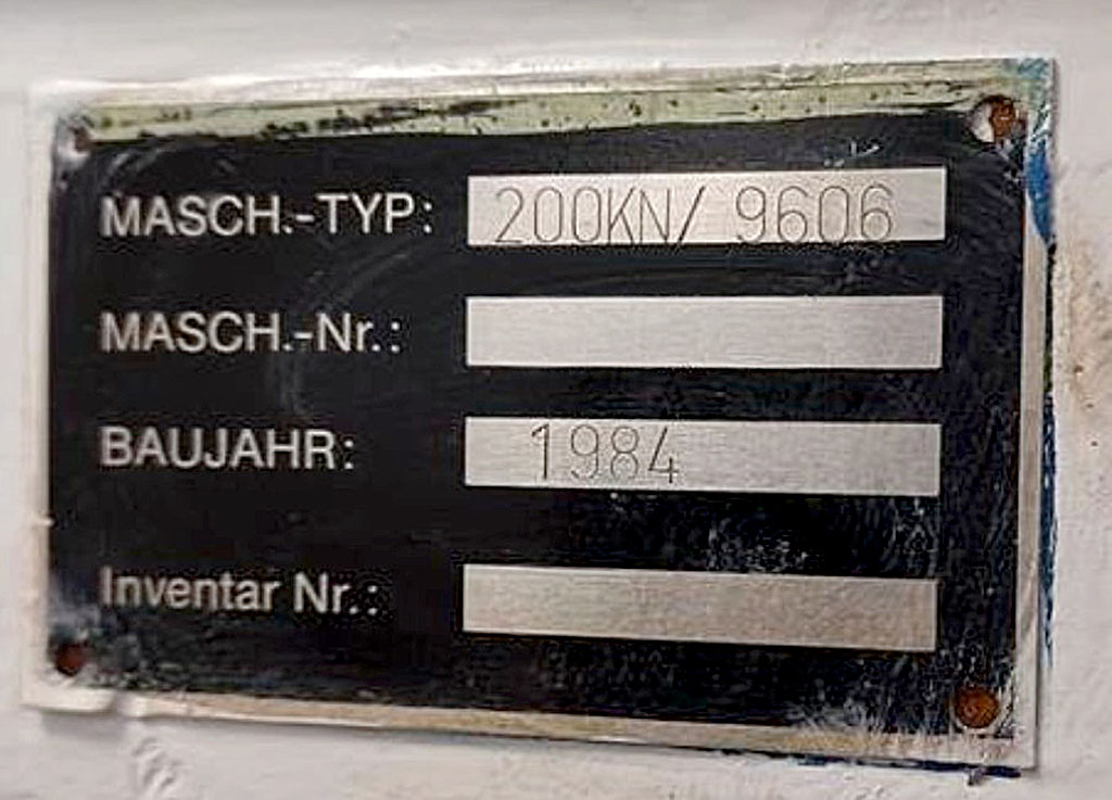 | Beschreibung Angeboten wird eine Material-Zugprüfmaschine Bj. 1984. Scherkraft-Zugversuche an Betonstahl, max. Zugkraft 200kN, Klemmvorrichtung, externe Steuereinheit. Besichtigung nach Absprache möglich. |
