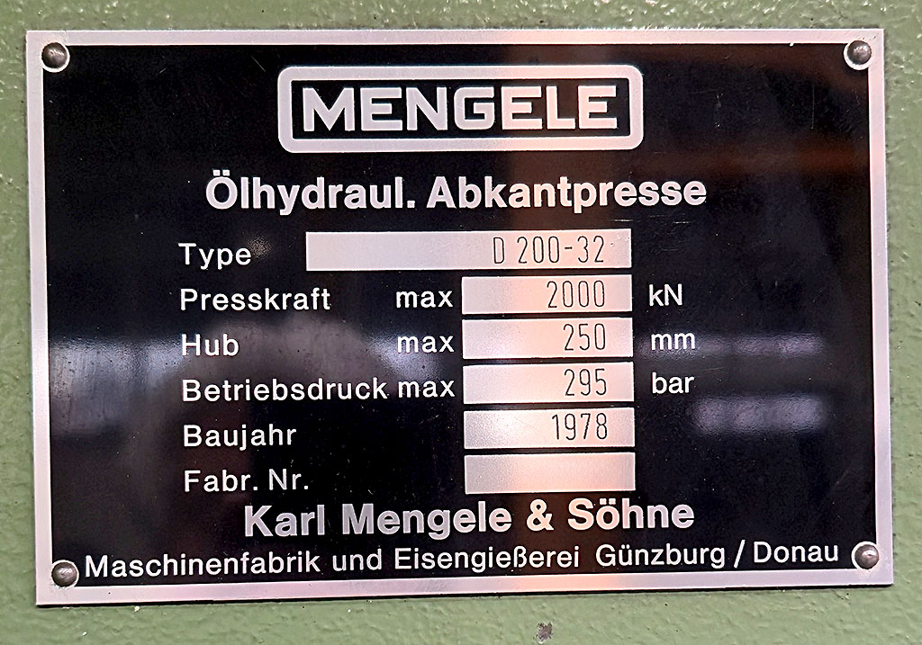 | Beschreibung Angeboten wird eine ölhydraulische Abkantpresse Bj. 1978, Presskraft max.: 2000kN, Hub max.: 250mm, Betriebsdruck max.: 295bar. Bedienfeld defekt. Besichtigung ist nach Absprache möglich. |