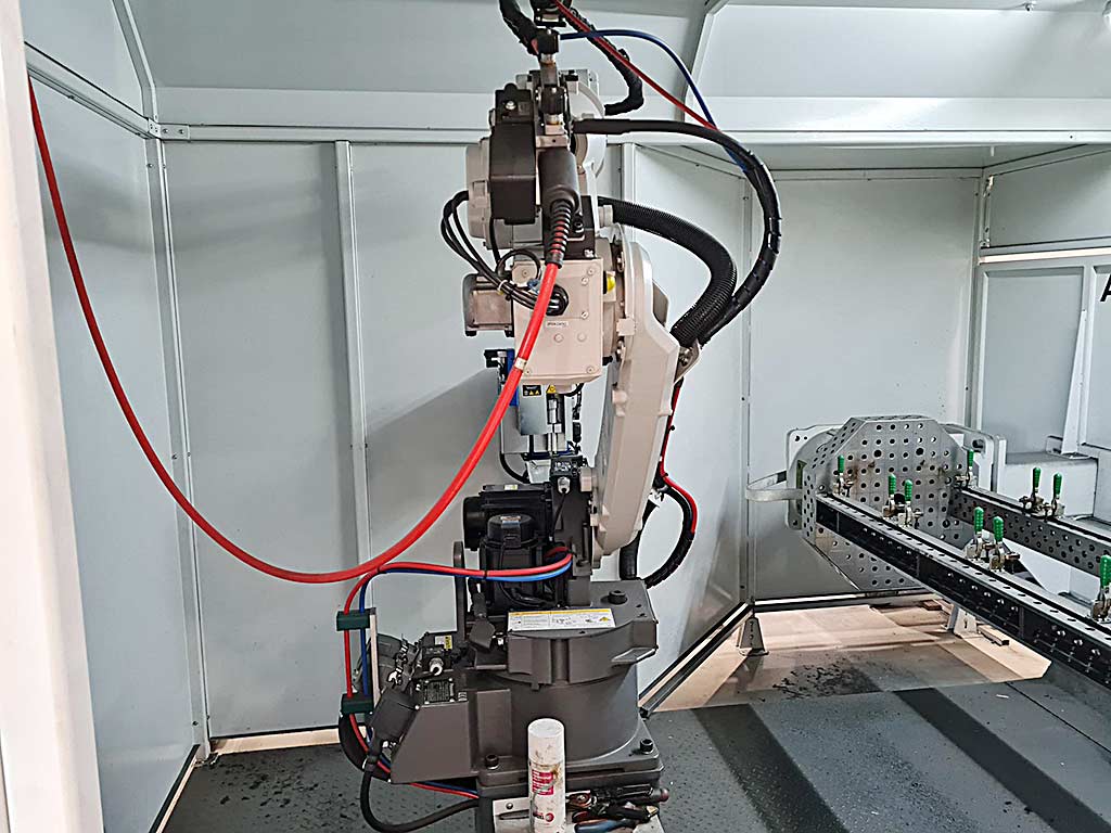 | Beschreibung Eine Schweißroboterzelle Panasonic mit zwei Drehtischen steht zur Verfügung. Vorrichtungskontur Drehtisch/pro Seite: 3800mm/1200mm, Arbeitshöhe: 900mm, Roboter: TM-2000, Positionierer: PanaDice, max. Traglast: 2x1000kg, Schweißzelle: PA-ET-2PD-XL, Brennerausrüstung: ATU011060. Gesamtanlagendimensionen X/Y/Z: ca. 7050mm/4100mm/2500mm, Gewicht: ca. 5300kg, Steuerung: Siemens SPS S7-1200, HMI: Siemens KTP 900 Basic. Dokumentation vorhanden. Eine Besichtigung vor Ort ist möglich. |