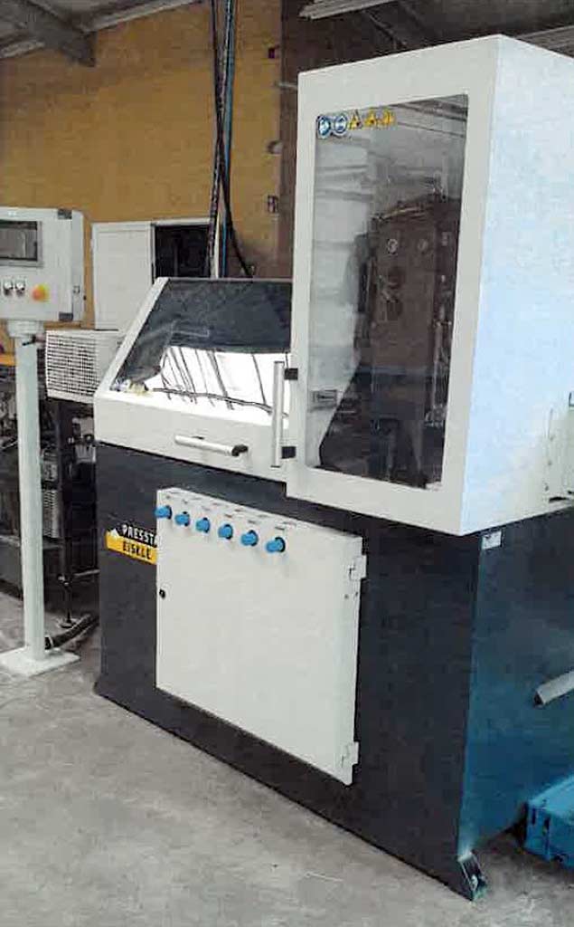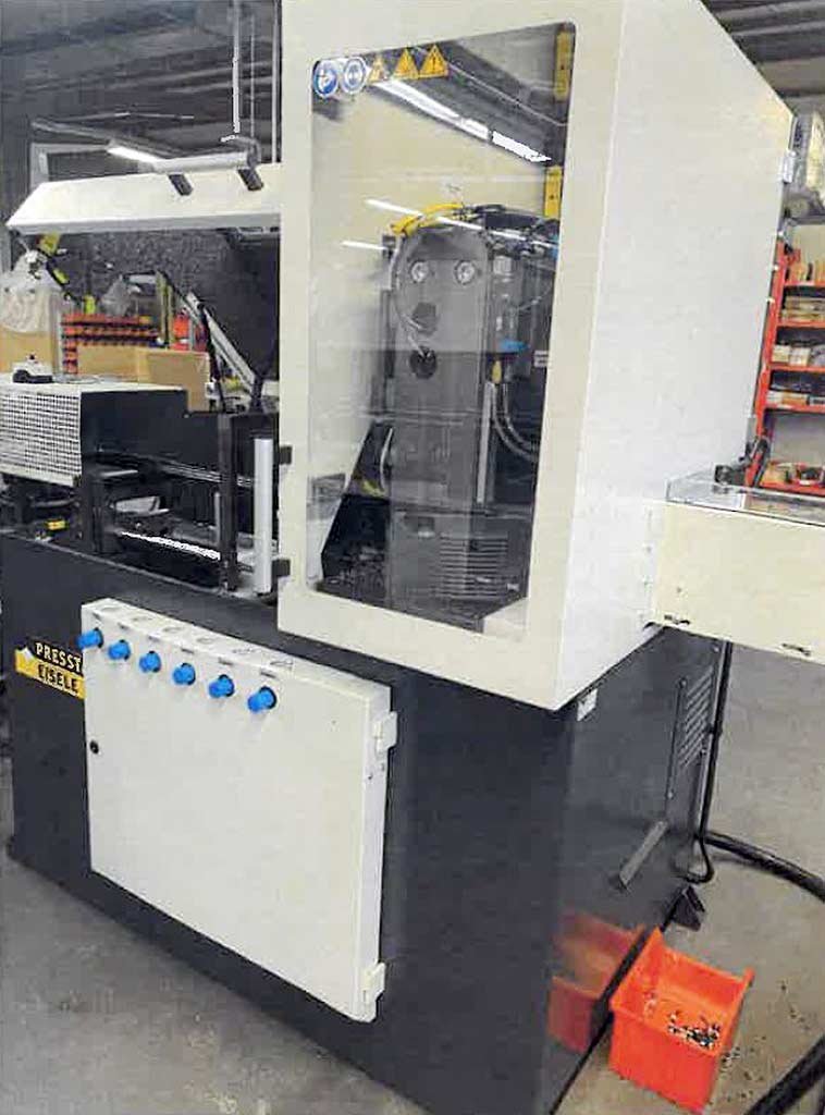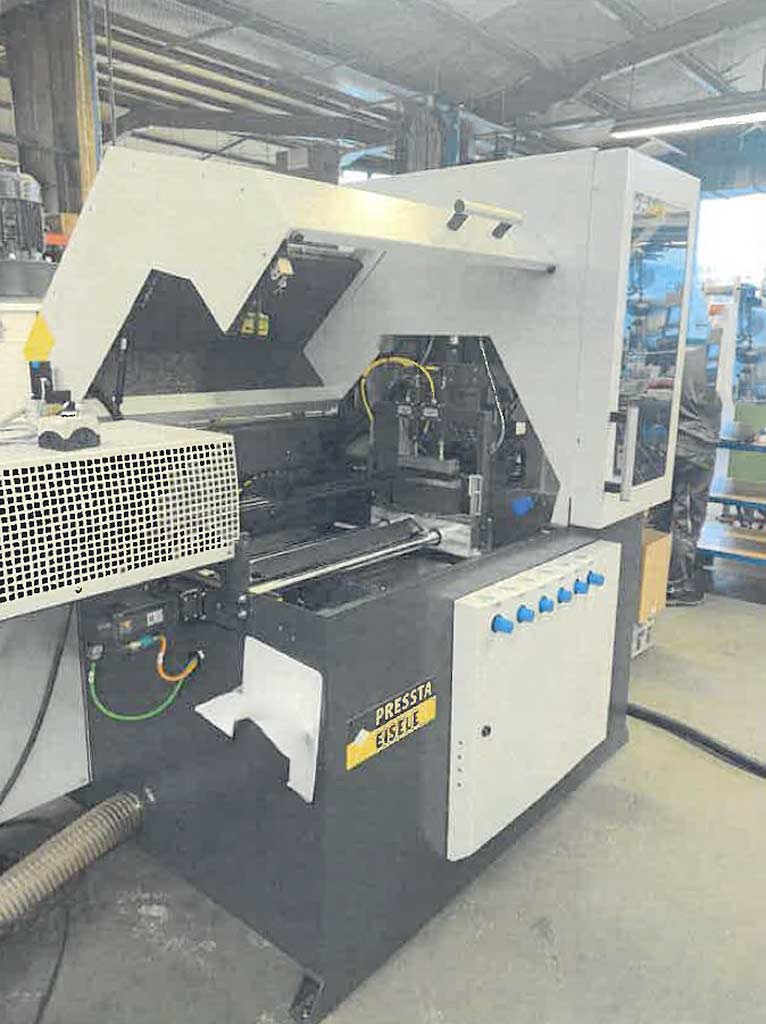 | Beschreibung Eine Kombianlage Pressta Eisele zum Ablängen, Abschären und Stanzen von Aluminiumprofilen steht zur Verfügung. Durchsatzleistung: ca. 380000 Stück/Monat, Taktzeit: ca. 10s, Stückzahl pro Takt: 4 Teile, Abschnittlänge: 65mm, Toleranz: +/-0,3mm, Rollenbahnlänge: 2000mm, Rollenbahnbreite: 290mm, Rollenabstand: 250mm, Traglast: 200kg/m, Steuerung: Siemens S7. 1) Sägeeinheit, Sägeblattdurchmesser: 500mm/550mm, max. Sägehöhe: 95mm, max. Abschnittlänge: 2300mm, Vorschublänge: 800mm. 2) Stanzeinheit, Vorschublänge: 740mm, Breite: 290mm, max. Stanzhub: 20mm, Stanzkraft: 300kN, Doppelhub-Taktzeit: 2s. Dokumentation vorhanden. Eine Besichtigung vor Ort ist möglich. |