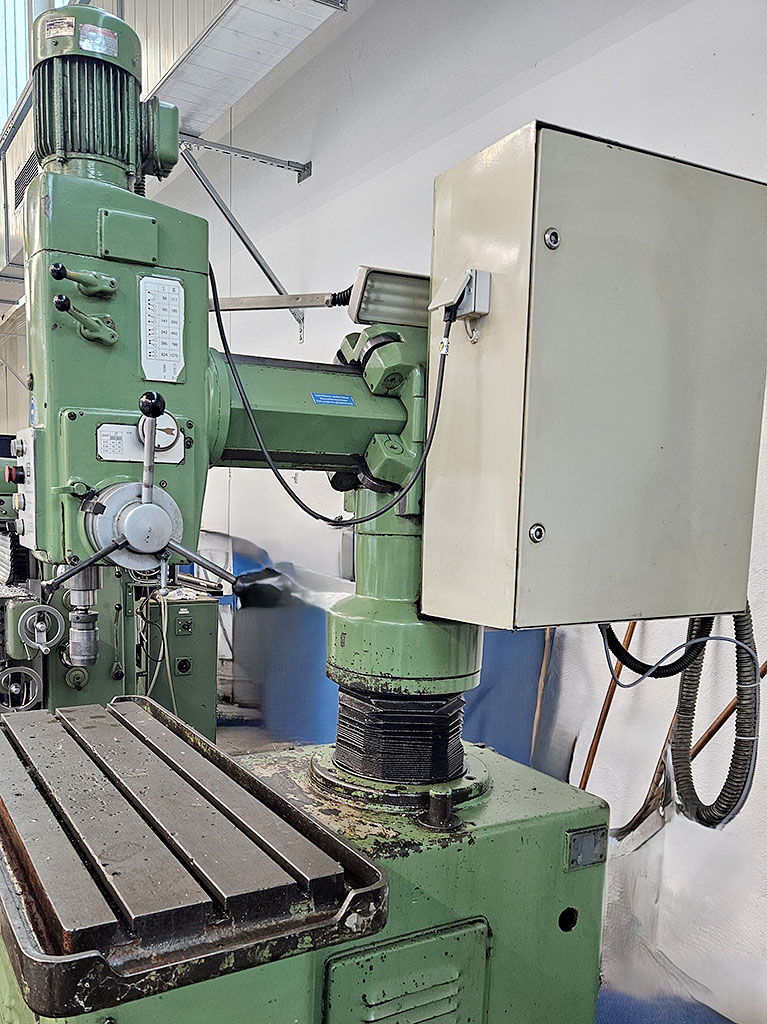 | Beschreibung Angeboten wird eine Schnellradial-/Ständerbohrmaschine. Bohrleistung: bis ca. Ø50mm. Drehzahlbereich: 58-1275U/min. Gewindeschneideinrichtung: vorhanden, Ausladung: 920mm, Maschinenleuchte: vorhanden, Grundplatte/Tischgröße X/Y: ca. 1100mm/400mm, T-Nuten: 2 hinten links, Motorleistung: ca. 1,5kW ohne Kühlmitteleinrichtung, Maschinengewicht: ca. 1200kg. Besichtigung unter Strom nach Absprache möglich. |