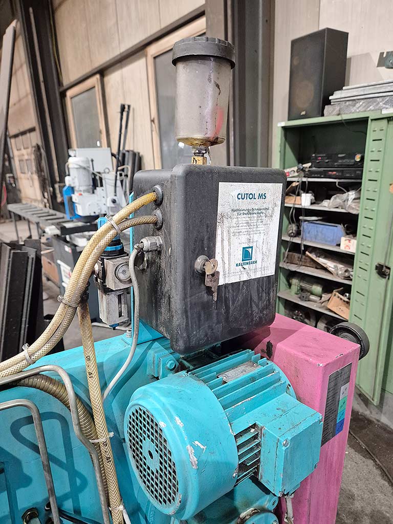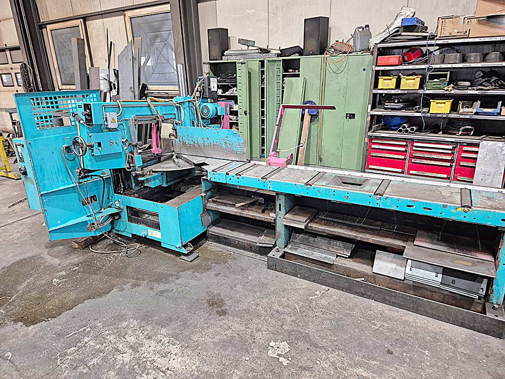 | Beschreibung Eine horizontale Gehrungssäge Kaltenbach steht zur Verfügung. Sägeblattdimensionen X/Y/Z: 3830mm/27mm/0,9mm, Sägeblattgeschwindigkeit: 100m/min, Arbeitshöhe: 700mm, max. Schnittbereich Rundmaterial: 305mm, max. Schnittbereich Vierkantmaterial: 360mm/305mm. Maschinendimensionen X/Y/Z: ca. 2300mm/1450mm/1650mm, Gewicht: ca. 800kg. Eine Besichtigung vor Ort ist möglich. |