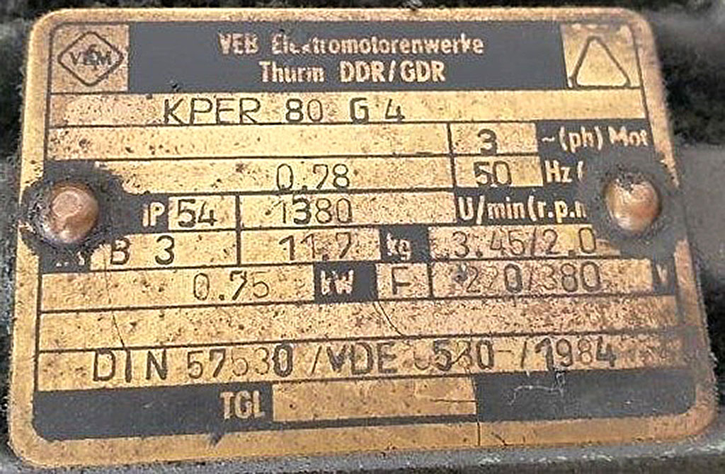 | Beschreibung Angeboten wird eine Säulenbohrmaschine Bj. 1984, Antrieb: VEM KPER 80 K 4, Drehzahlbereiche: 3-stufiger Riementrieb, Spindeldrehzahl: ca. 1380U/min, Pinolenhub: ca. 120mm, MK 2. Besichtigung ist nach Absprache möglich. |