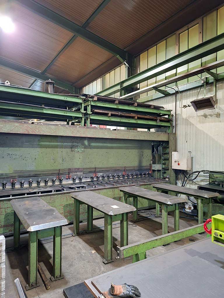 | Beschreibung Eine hydraulische Großformat-Blechschere Schneider steht zur Verfügung. Breite: 6020mm, Biegelänge: 6000mm, max. Blechstärke bei 6000mm: 10mm. Mit Positionsanzeige. Eine Besichtigung vor Ort ist möglich. |