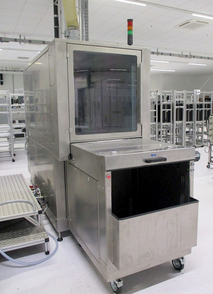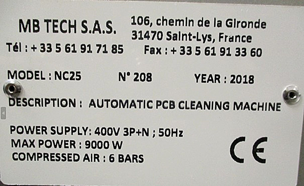 | Beschreibung Angeboten wird eine Reinigungsanlage für Baugruppen in der Elektronikfertigung: Funktionen: Injektions-Fluten mit Druckluftunterstützung, Vakuumtrocknung, 100% Kreislaufführung (Closed Loop), MPC-Reiniger kompatibel. Technische Daten: Reinigungstank 80L, Spültanks 2x 60L. Edelstahlkonstruktion. Abmessung X/Y/Z: ca. 1600mm/1000mm/2000mm, Gewicht: ca. 700kg, inkl. Betriebsanleitung, Datenblatt, CE-Deklaration. Besichtigung nach Absprache möglich. |