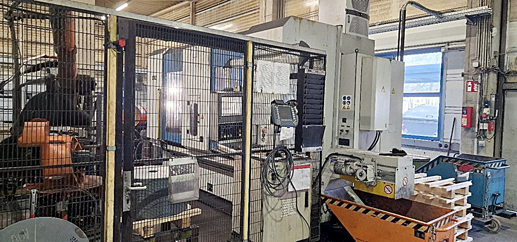 | Beschreibung Angeboten wird ein Fahrständer-Bearbeitungszentrum mit Pendelbearbeitung inkl. eines KUKA KRC1 Bj. 1997 (KR150-2). Verfahrwege: X/Y/Z 2x900mm/600mm/700mm. Hauptspindel: Kessler DME 112, Hohlwellenmotor wassergekühlt: Drehzahl: 30-6000U/min, Werkzeugaufnahme: SK40, Werkzeugwechsler: Teller 22 Plätze. Gesamtgewicht: ca. 10000kg, Messsysteme: Heidenhain LC 183, inkl. Späneförderer, Dokumentation. Besichtigung nach Absprache möglich. |