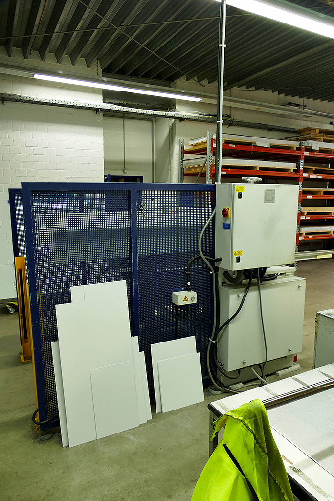 | Beschreibung Angeboten wird eine Hochleistungs-Kurbeltafelschere mit geringem Betriebsstundenstand. Bauart: Ganzstahlschweißkonstruktion, Hubzahl: 50 Hübe/min, Steuerung FM 1S, Hinteranschlag manuell oder motorisch (MAH 51/52), pneumatischer Niederhalter, Sicherheitslichtschranke hinten. Besichtigung nach Absprache möglich. |