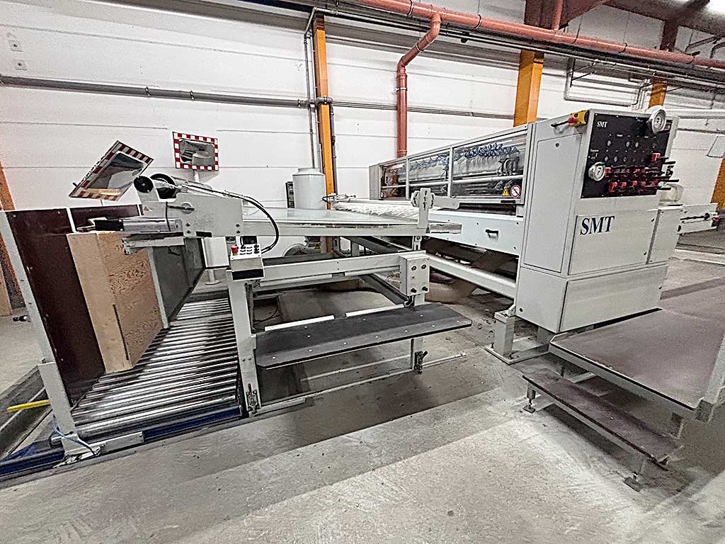 | Beschreibung Messeranzahl: 5, Rillerpaare: 8, Werkzeug-Positioniergenauigkeit: +/-0,5mm, min. Rillspalt: 0,7mm, min. Nutzen: 82mm, min. Rillabstand: 60mm, Messerdurchmesser: 240mm, Arbeitsbreite: 2500mm, max. Wellpappenstärke: 16mm, Bahngeschwindigkeitsbereich: 30m-120m/min, max. Stapelhöhe (Auslauf): 1400mm. Maschinendimensionen X/Y/Z: ca. 4300mm/3500mm/2200mm, Gewicht: ca. 8000kg. Dokumentation vorhanden. Eine Besichtigung vor Ort ist möglich. |