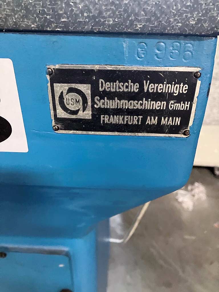 | Beschreibung Eine Schuhstanzmaschine der Fa. Deutsche Vereinigte Schuhmaschinen (DSGV-/USM-Gruppe) steht zur Verfügung. Presskraft: 25t, Tischdimensionen X/Y: 900mm/450mm. Maschinendimensionen X/Y/Z: ca. 1000mm/800mm/1250mm, Gewicht: ca. 300kg. Eine Besichtigung vor Ort ist möglich. |