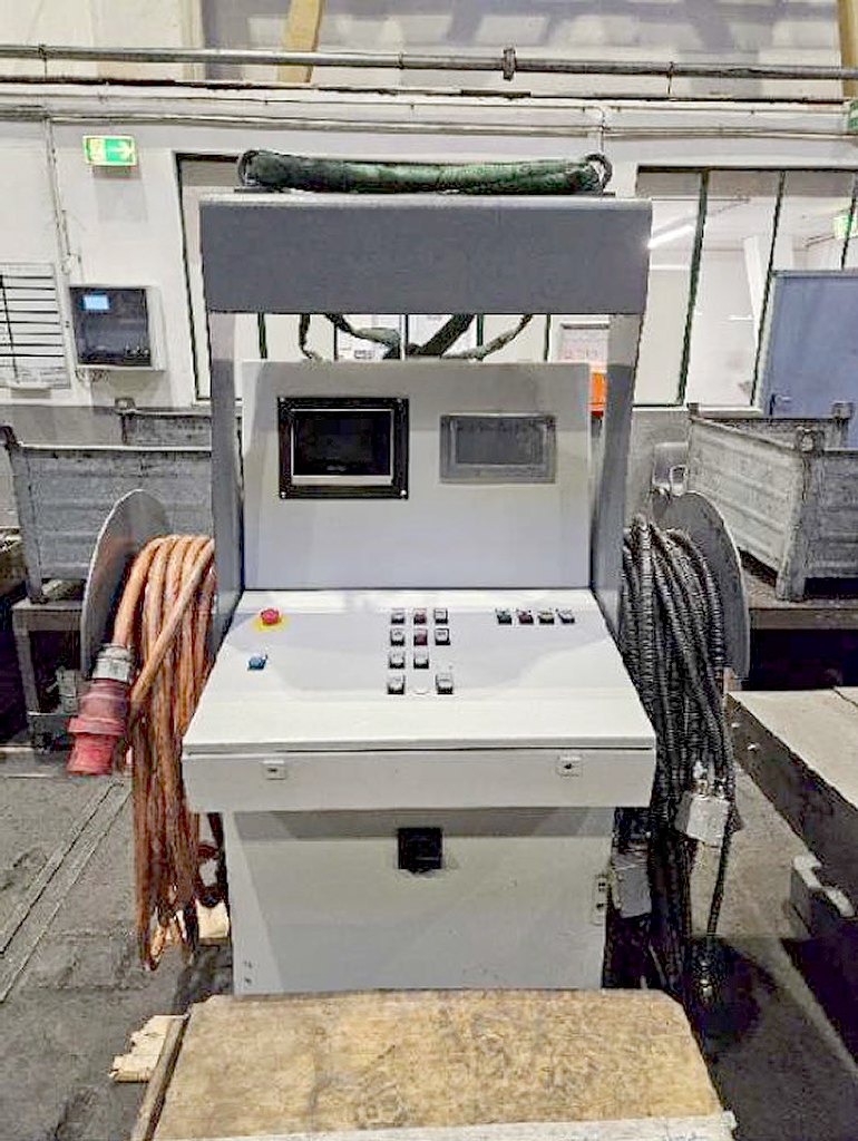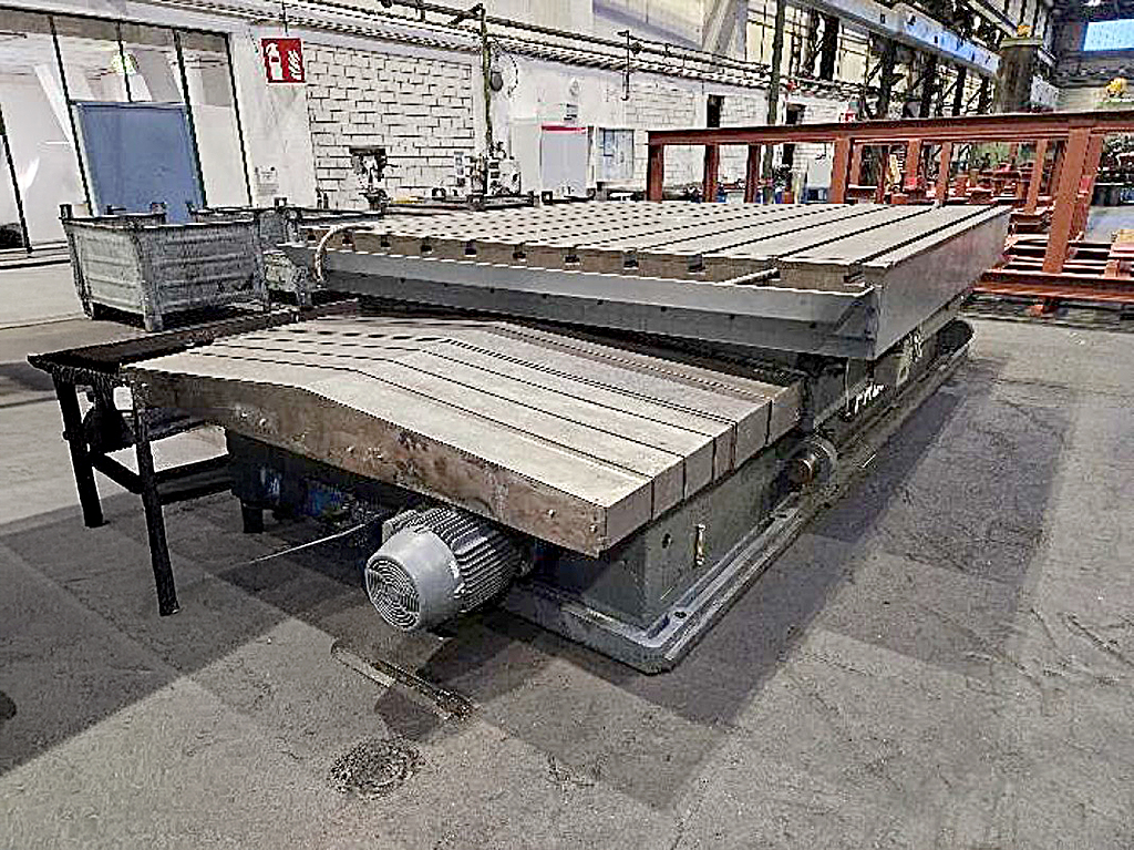 | Beschreibung Angeboten wird ein Schwerlast-Drehtisch, der 2024 komplett überholt wurde. Schaltschrank: neu, Motoren/Komponenten: neu, Tischgröße X/Y: 3200mm/3200mm, Tischbelastung max.: 40000kg. Verfahrweg Tischschlitten: 1750mm. Steuerung: Siemens, Messsysteme: Heidenhain, Schaltschrank in Transportvorrichtung, regelmäßig gewartet, Dokumentation: ursprüngliche Pläne, Schaltpläne 2024, Klemmenplan, Bedienungsanleitung, Maschinengewicht: ca. 30000kg. Besichtigung nach Absprache möglich. |