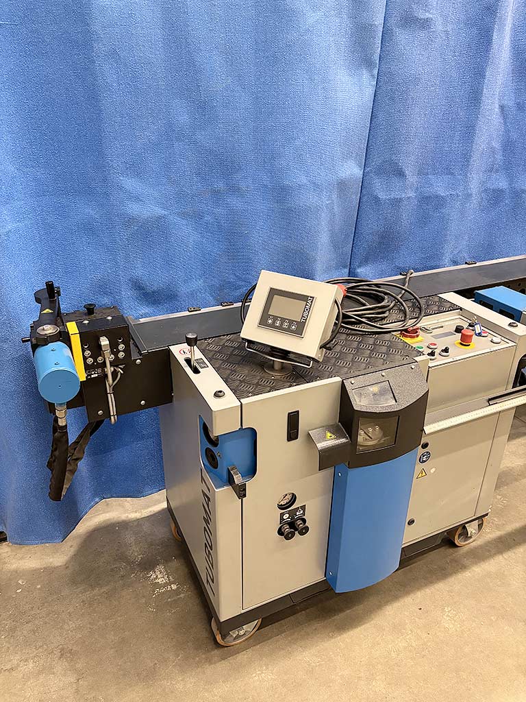 | Beschreibung Eine halbautomatische NC-Rohrbiegemaschine Tracto-Technik steht zur Verfügung. Rohrdurchmesser: 48mm, max. Rohrlänge: 3000mm, max. Materialstärke: 4mm, max. Biegewinkel: 180°, max. Biegeradius: 125mm, Biegegenauigkeit: +/-0,2°, Biegegeschwindigkeit: 20°/s. Maschinendimensionen X/Y/Z: ca. 3900mm/800mm/1250mm, Gewicht: ca. 700kg, Steuerung: Siemens Simatic. Dokumentation vorhanden. Eine Besichtigung vor Ort ist möglich. |