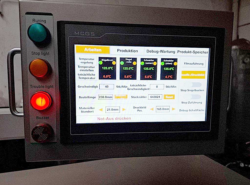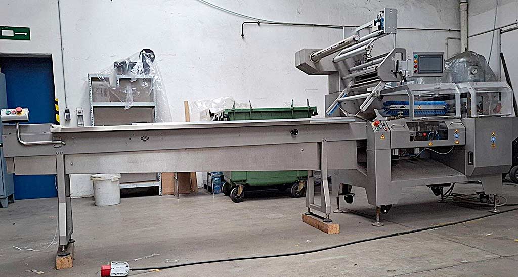 | Beschreibung Eine horizontale Flow-Pack-Verpackungsmaschine (Schlauchbeutelmaschine) SKS steht zur Verfügung. Verpackungsleistung: 30-120 Packungen/min, Folienrollenbreite: 220mm-500mm, Beutellängenbereich: 120mm-500mm, Beutelbreitenbereich: 60mm-200mm, Beutelhöhenbereich: 5mm-80mm. Maschinendimensionen X/Y/Z: ca. 4500mm/1150mm/1600mm, Gewicht: ca. 800kg. Dokumentation vorhanden. Eine Besichtigung vor Ort ist möglich. |