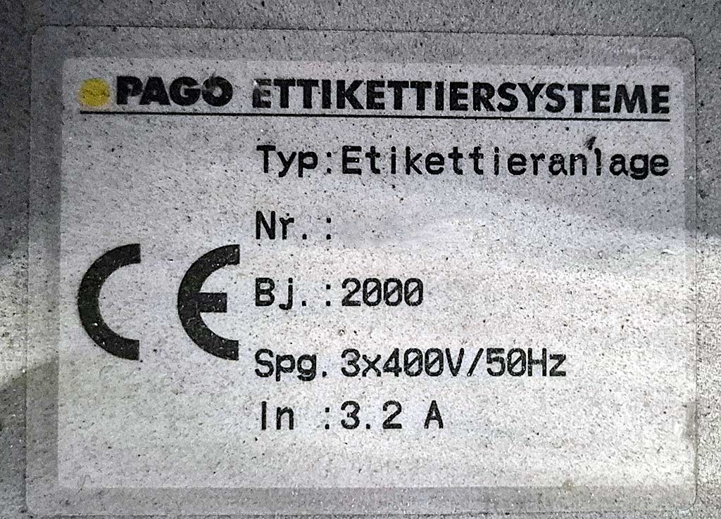 | Beschreibung Eine Selbstklebeetiketten-Etikettieranlage Pago steht zur Verfügung. Etikettenlängenbereich: 10mm-900mm, max. Etikettenbreite: 150mm, max. Produktbreite: 135mm, max. Produkthöhe: 100mm, max. Etikettenrollen-Außendurchmesser: 400mm. Maschinendimensionen X/Y/Z: ca. 2000mm/1100mm/1500mm, Gewicht: ca. 750kg. Dokumentation vorhanden. Eine Besichtigung vor Ort ist möglich. |