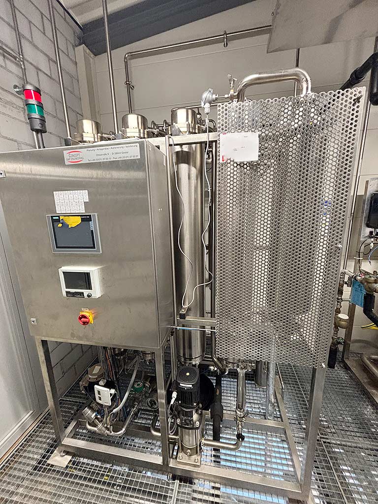 | Beschreibung Eingangsmedium: AP-Wasser, Ausgangsmedium: Destillat, Destillat-Ausgangstemperatur: ca. 99°C, Behältervolumen: 900l, Anzahl Vorwärmer/Verdampferkolonnen: 3/4, Destillatproduktion: 300l/h, Reindampfproduktion: ca. 70kg/h, Arbeitsmodi: Destillatproduktion/Reindampfproduktion/WFI-Ringleitungssystemsterilisation, Steuerung: Siemens SPS S7-300. Die Destillationsanlage wurde als Teil einer Gesamtanlage konzipiert, besitzt jedoch eine eigene Steuerung und Automatik und kann im separaten Betrieb verwendet werden. Dokumentation vorhanden. Eine Besichtigung vor Ort ist möglich. |