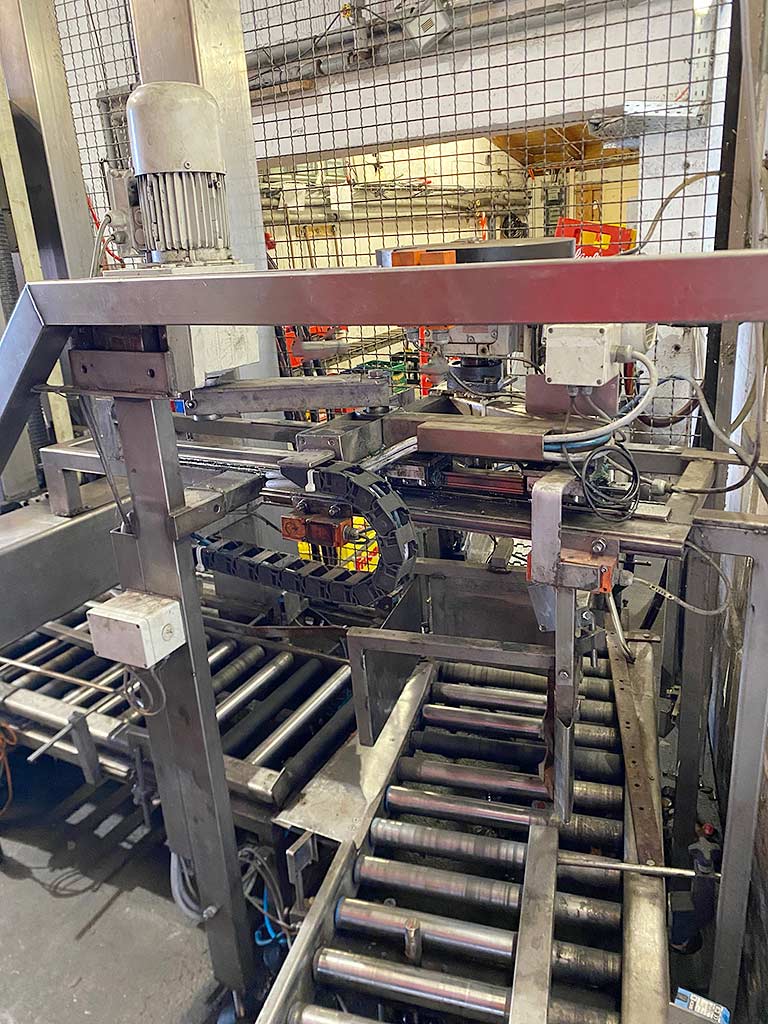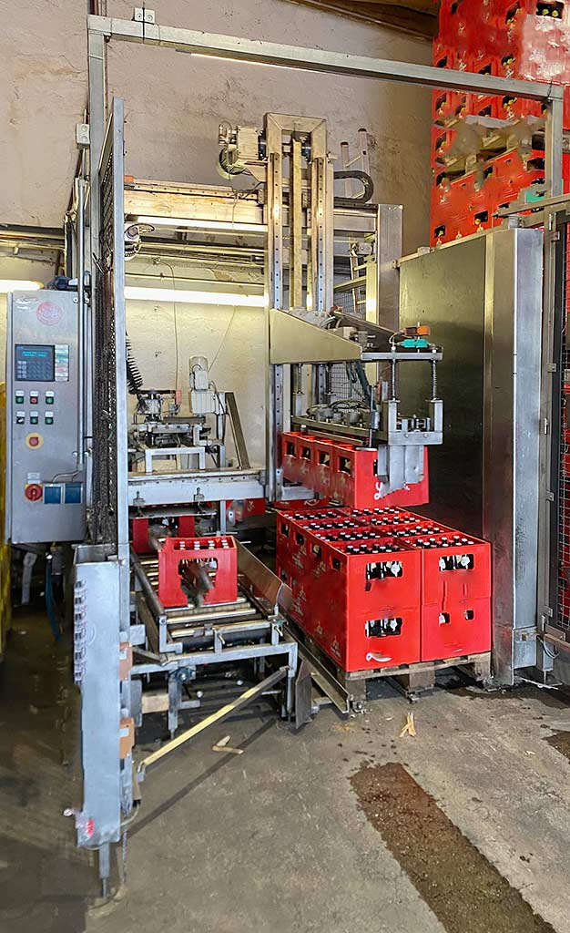 | Beschreibung Eine Be- und Entpalettieranlage Otto Fleischer (Flema) für Kästen steht zur Verfügung. Palettenarten: NRW-Palette/Europalette/Bierpalette, Palettierleistung: 500Kästen/h, Bierpalettendimensionen X/Y: 1200mm/1000mm, Betriebsdruck: 4bar. Dokumentation vorhanden. Eine Besichtigung vor Ort ist möglich. |