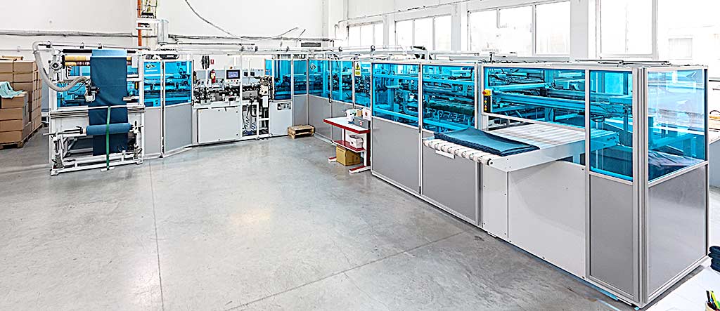 | Beschreibung Eine vollautomatische Herstellungslinie für europäische Klappen-Kissenbezüge (European Flap Pillow Case) mit Einschlag steht zur Verfügung. Automatex. Wender: 2, Einlauf: Abwickler, Schneidverfahren: Querschneiden, Nähköpfe: 4, Nähkopfverteilung links/rechts: 2/2. Dokumentation vorhanden. Eine Besichtigung vor Ort ist möglich. |