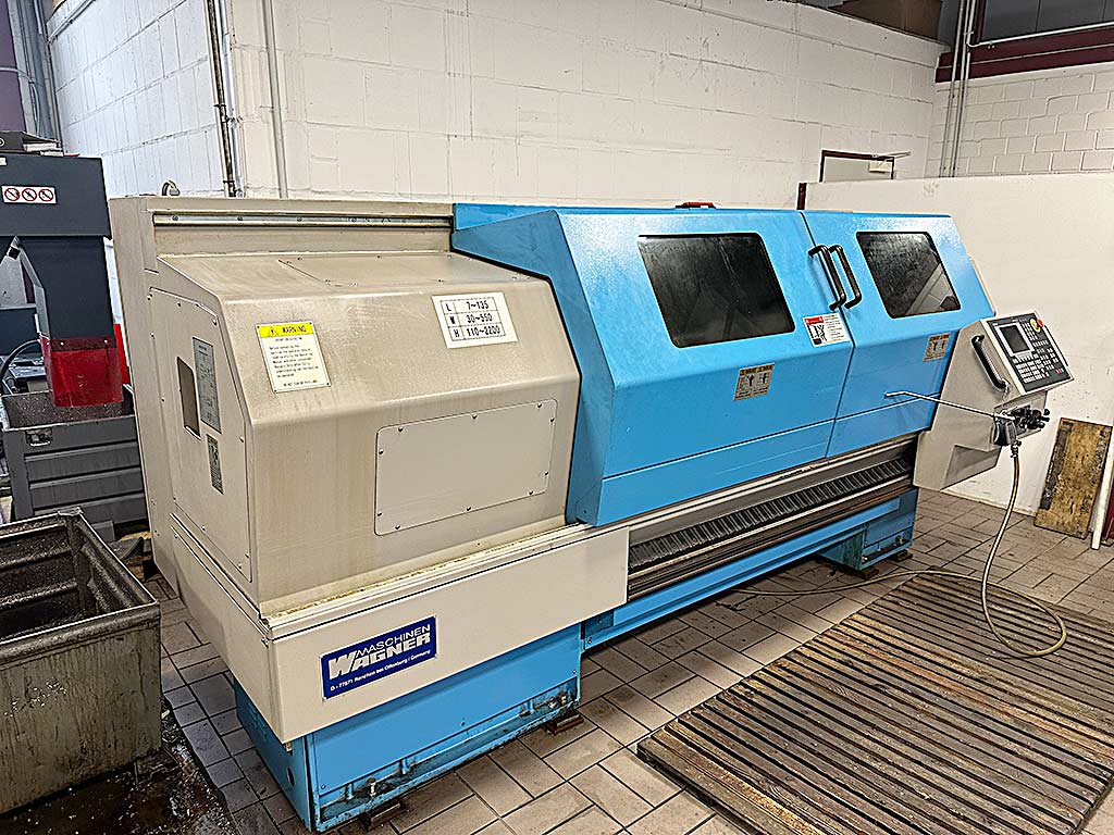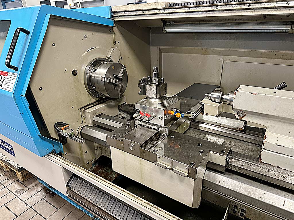 | Beschreibung Eine sehr wenig benutzte zyklengesteuerte Flachbett-Drehmaschine Wagner mit umfangreichem Zubehör steht zur Verfügung. Umlaufdurchmesser über Bett/Planschlitten: 500mm/280mm, Spitzenweite: 1500mm, Bettbreite: 350mm, Drehzahl: 3000U/min, Verfahrweg X/Z: 295mm/1435mm, Eilgang: 5m/min, Positioniergenauigkeit: +/-0,01mm, Wiederholgenauigkeit: +/-0,005mm, Pinolendurchmesser: 75mm, Pinolenhub: 150mm, Pinolenkegel: MK5, Maschinendimensionen X/Y/Z: ca. 3300mm/1700mm/1700mm, Gewicht: ca. 3000kg, Steuerung: Siemens Sinumerik 802C base line, Betriebsstunden: ca. 1702h. Inklusive diverser Werkzeuge, Kühlmitteleinrichtung, Grundhalter, 3-Backenfutter und mehrerer Werkzeughalter Parat. Dokumentation vorhanden. Eine Besichtigung vor Ort ist möglich. |